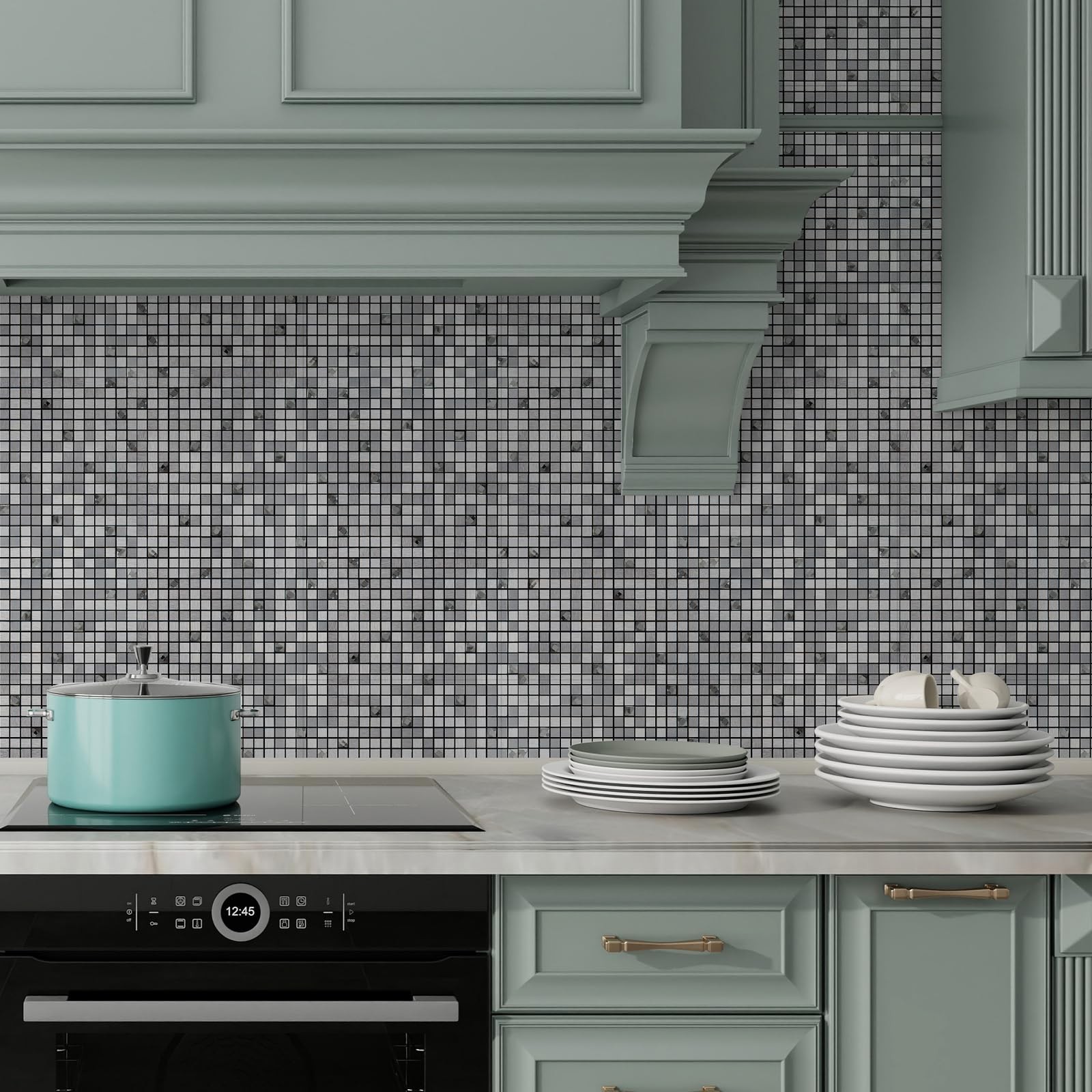 Peel and Stick Metal Backsplash, 8-Sheet Peel and Stick Glass Mixed Metal Tiles Stick on Backsplash for Kitchen Bathroom Wall Metal Backsplash Size: Come in a box of 8 sheets peel and stick metal backsplash tile, 11.8"L x 11.8"W x 0.2"H each, covering about 7.75 square feet Glass Mixed Metal Backsplash Tile: The design of metal and the glass will provide space with light and excellent visual quality, especially as a mirror edge Easy to Apply: Just peel and stick to install, no need to overlap, no grout and no mess, save your time and money on labor Waterproof and Heat Resistant: Lightweight, stiff and firm, resist to the heat, moisture and water in kitchen and bathroom, easy to maintain Multiple Usage: Widely used in kitchen backsplash, bathroom walls, shower, fireplace, and installed behind the stove