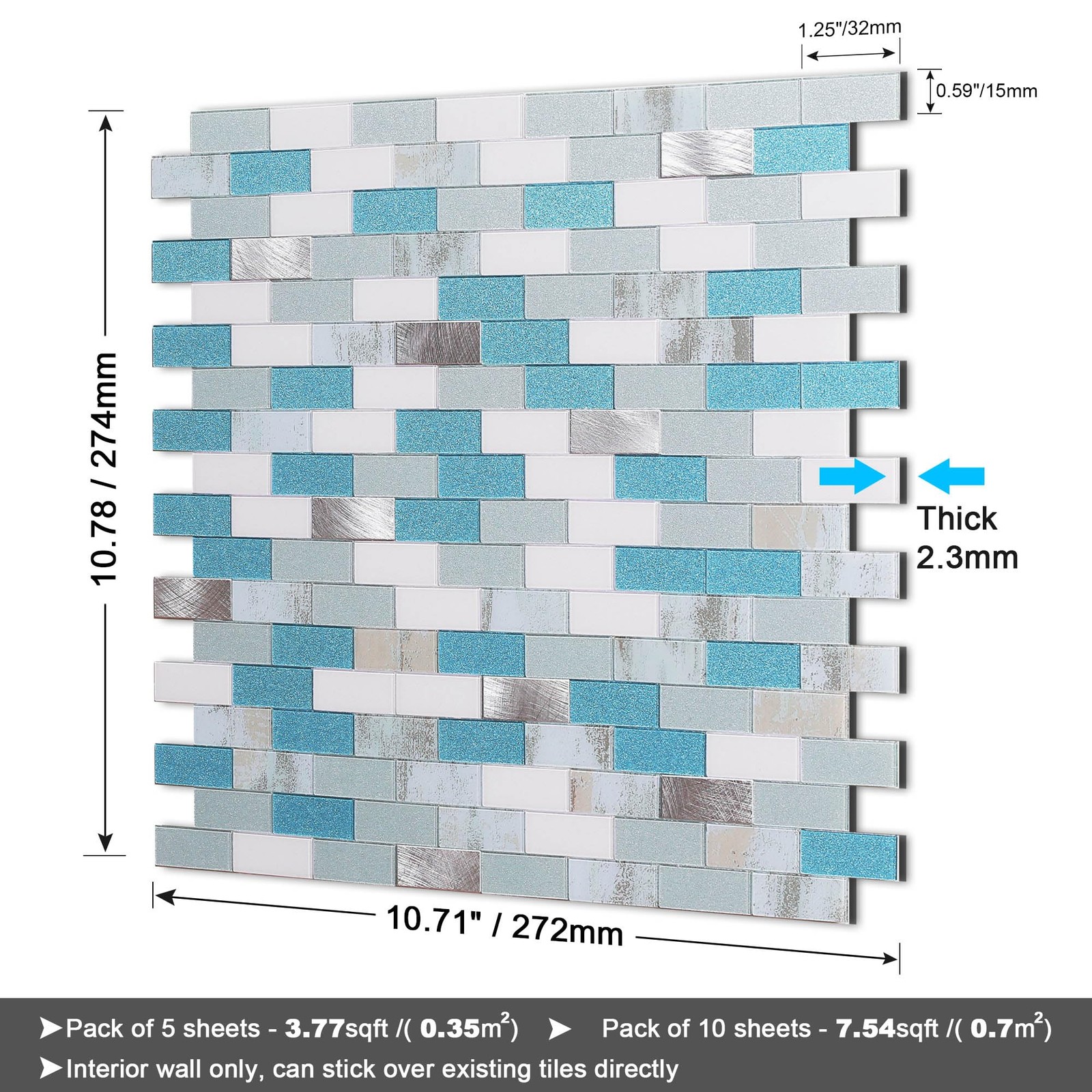 Peel and stick brick tile backsplash,Peel and stick brick tiles for walls,Brick peel and stick backsplash,Peel and stick waterproof tile for bathroom,peel and stick backsplash 3D Real Peel and Stick Mosaic Tiles Backsplash:Mounted one by one by hand on adhesive backing,with tight joints,sheets are interlocking.NOT vinyl backsplash sticker, NOT wallpaper Easy DIY 3D Stick Tiles:Just peel and stick.Ideal stick on tiles stickers for kitchen backsplash and bathroom wall,save your treasure time and job Marble Tiles Features:Peel and stick backsplash tile made of durable resin plastic material,mixed with aluminum surface chips,surface glossy,heat resistant,Water-proof.Easy to wipe with sponge or damp cloth Uses Bathroom Tile Stickers:Perfect for bedroom,dining areas,laundry room,bathrooms,offices,stairs,fireplace,kitchen backsplash, or on any other flat surfaces that are non-porous surface (metal,glass,stainless steel ceramic,plastic,etc) Worthful to Buy Adhesive Wall Tiles Peel and Stick:Easier to work with than big rolls or larger tiles as they can be easily trimmed with scissors or utility knives so you can customize them the way you want