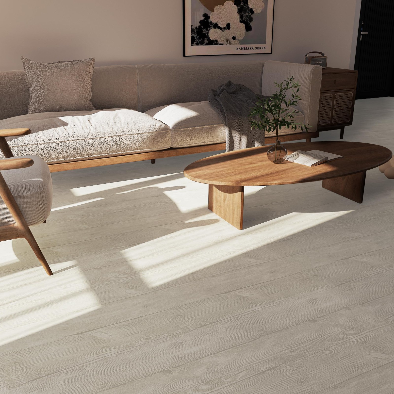 Specification Name: Wood Grain Vinyl Floor Sticker Material: PVC Color: beige Thickness: 0.3mm Pattern: wood grain pattern Size: 24x197 inches (WxL) Coverage area: 32.2 square feet/roll Features: self-adhesive, removable, waterproof, wear-resistant, easy to install, easy to clean Installation: just peel and stick Waterproof and Wear Resistant Vinyl Floor Covering: floor tiles are made using a multi-layer pressing process that is wear resistant, waterproof and easy to clean, simply clean as you would a normal floor. Peel and Stick Floor Tiles: Floor tiles floor rolls are easy to install, no special tools or adhesives needed, just peel off the backing and install on a flat and smooth surface. Large Vinyl Flooring Roll: The wood vinyl floor tile sticker measures 197 inches in length and 24 inches in width, each roll of floor sticker covers 32.2 square feet, which greatly improves installation efficiency by reducing the amount of material, seam requirements, and installation time when compared to traditional floor tiles and strips. Realistic Wood Pattern: The vinyl floor sticker has a realistic wood texture design, great for floor surfaces in bedrooms, living rooms, bedrooms, kitchens, lounges, RV's, offices, break rooms and more. About the Product: As this floor sticker is thin, the thickness is only 0.3mm, but we add a special wear-resistant layer to its surface, it can be used for a long time on flat and smooth surfaces, please consider its thickness factor before you buy it.