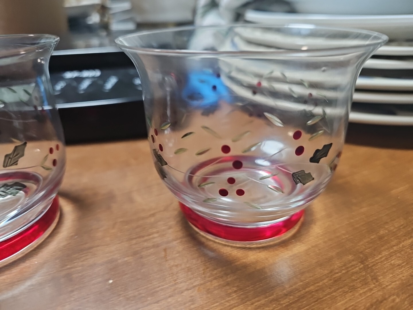 Add a festive touch to your home décor with this set of three Pfaltzgraff Winterberry etched votive candle holders. These original pieces are perfect for anyone who wants to bring a touch of Christmas into their home. The red and green color scheme pairs perfectly with the etched design and the glass material adds an extra level of elegance. Each candle holder is suitable for a votive candle and comes in its original box, making it a great gift option for any candle enthusiast. The theme of candles and Christmas makes these decorative pieces a must-have for your collection.