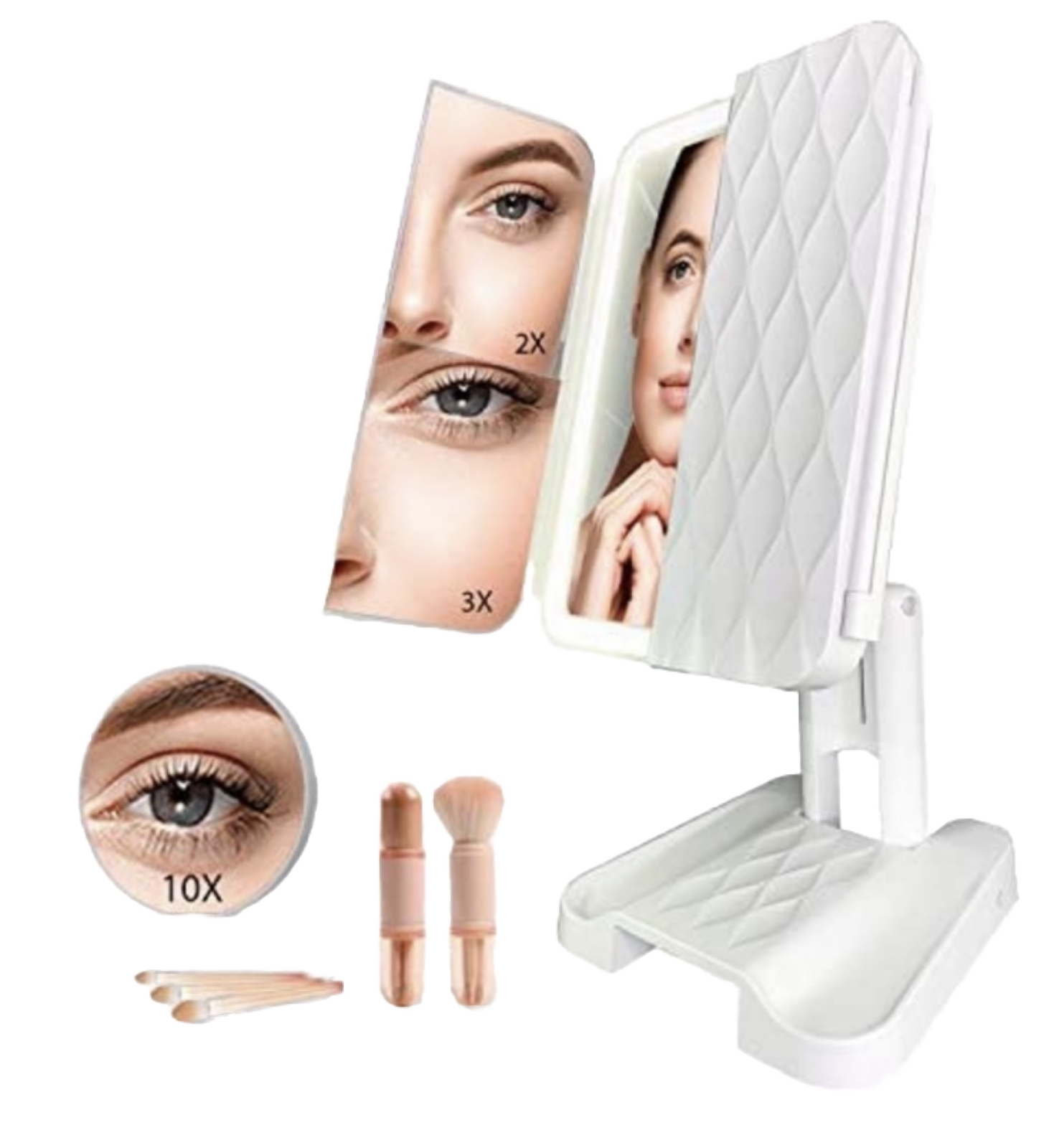 Lighted Makeup Mirror Trifold 3 Color Lighting Modes Portable Travel Phabmax. Touch Control. 3 color Mode settings. 72 LED. 1X/2X/3X10X Magnification.Portable-perfect for travel, RV, small apartment, college dorm. Battery operated. Good used condition.