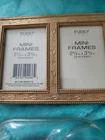 This photo frame set includes two frames: one double gold brass/metal Furio 2.5 x 3.5 inch vintage from 1998 and one unbranded made of etched glass with a floral/tulip design. Both frames are designed to hold photos that are 2.5 inches in width and 3.5 inches in height. These very different style frames feature clear glass to protect the photos. These freestanding frames have a rear-loading photo insertion type and are suitable for portrait-oriented 2x3 inch photos. The glass frame can also be used in landscape orientation also. The frames are lightweight, with the metal and glass construction providing a sleek and elegant look for displaying your cherished memories.