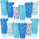 Pickmesh 12 Pack Winter Cup Reusable Coffee Cup 16 oz Winter Tumblers with Lid Plastic Winter Coffee Mug Travel Coffee Mug Thank You Gifts for Hot and Cold Drinks