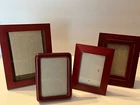 4 frames. The largest holds a 5 x 7. The other 3 hold a 3 1/2 x 5. One frame has a small knick on the side. See pictures.