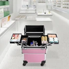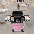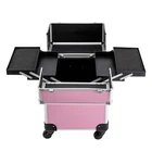 This pink rolling train case is a game-changer for makeup artists and beauty lovers! The sturdy aluminum alloy and ABS construction keeps everything secure, while the four spacious trays neatly organize all my cosmetics. The smooth universal wheels and retractable handle make it effortless to roll around, even fully loaded. The frosted finish gives it a sleek, professional look, and the latch opening ensures quick access. Perfect for travel or salon use—highly recommend for anyone who needs a durable, stylish, and ultra-functional cosmetic organizer!