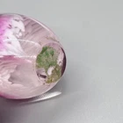Pink Lily Paperweight Egg Shape Glass 3 Inches Tall Elevate your desk's charm with the Pink Lily Paperweight, a delightful addition to any collector's assortment or a thoughtful gift for someone who appreciates the elegance of art glass. This egg-shaped decorative piece, standing at a quaint 3 inches tall, is crafted from high-quality glass, showcasing a beautiful flower pattern that brings a touch of nature indoors. With its vibrant pink hue and intricate flower theme, this paperweight is not only functional but also serves as a stylish accent to your workspace or display shelf. Despite its unknown origin, the piece hails from the late 90s, adding a dash of vintage flair to your decor. Its artful design and glossy finish make it a standout accessory that blends sophistication with whimsy. 3" Tall x 1 1/2" Diameter