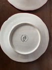 Pioneer woman set of seven red floral luncheon plates. Three of the plates have some crackling on them three do not. There are also 2 small nicks on two of the rims of the plates and one small stain on one. Please see pictures.