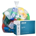 A bag to set your mind at ease. At 32-33 gallons, these extra clear recycling bags are the perfect size for large commercial bins. With a 1.2 mil thickness of stretchy low-density resins, they can collect big loads of rough or sharp recyclables, and even resist puncture by items like metal lids or jagged glass. The crystal clarity of this high-quality mostly prime material means you can see the contents at a glance. These bags are proudly made in the USA, and that superior workmanship can be seen in the carefully reinforced gusset seam, which offers each bag extra give, virtually eliminating tears and leaks. PRODUCT FEATURES: Type of Use - These bags are perfect size for large commercial bins. Durable - Recycling bag is extra clear, durable, and dependable. 32-33 Gallon Trash Bag - Extra Clear. Gusset Seal. 33”W x 39”H - 1.2 Mil Thick. Features - These bags can collect big loads of rough or sharp recyclables, and even resist puncture by items like metal lids or jagged glass. Quality Strength - Made from low density superior resins (thicker material). Proudly made in the USA.