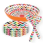 's modern melamine plates make a splash in any setting. 's high-glazed 9 inch colorful salad plates set is great for the home or as a gift. The scratch and shatter resistant dishes are easy to clean since they're dishwasher safe, and to 356-degree F, 180-degree C. The durability and functiolity of the material is perfect for indoor or outdoor entertaining. - reinterpreting everyday staples with a fresh, modern spin. Our high quality heavy weight 9 inch melamine salad plates are perfect for everyday dining and for entertaining. Perfect for indoor and outdoor use melamine is great for BBQs summer fun entertaining fiesta and parties of all kinds very kid friendly will not chip or crack easily. Our 9 inch plates are perfectly sized for salad, sides, lunch, and snacks. Dishwasher safe glazed melamine BPA-free scratch and shatter resistant and kid-friendly. designs are created by Jackie Shapiro - iconoclast designer based in New York City. Explore mixing and matching other patterns to create your personal collection.
