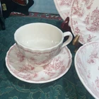 Elevate your dinner setting with this beautiful 5 piece Queens Chelsea Toile Pink White Dinner Plate set. The classic swirl pattern and elegant pink and white color combination make it suitable for all occasions. Made of high-quality ceramic, this plate set includes a dinner plate, soup bowl, sauce plate, bread plate, and cereal bowl. The Queens Chelsea Toile Pink White Dinner Plate set is part of the Queens product line and is a vintage collection that was produced in Colombia in the 1990s. These plates were studio crafted with an earthenware production style and feature a classic theme. Whether you're hosting a dinner party or looking to add some charm to your table setting, this set is a must-have.