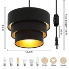 Return Policy Fast Delivery Trusted seller Plug in Pendant Light, Hanging Lamp with Dimmable Switch, Drum Pendant Light Fixtures with 15 Ft Cord, Swag Light with Black Fabric Shade for Bedroom, Kitchen, Living Room Product Description 【?????? & ?????????? ?-???? ??????】This plug in pendant light is designed with three different sizes of drum lampshades and gold liner, which is more layered and artistic than ordinary single-layer lampshades. The premium fabric lampshades can soften the light and provide comfortable light to reduce eye strain and protect your eyes. 【???????? ??????】The drum pendant light fixtures is equipped with a step-less dimming switch and a 15 ft long thick cord, and just turn the switch to adjust the brightness from 0% to 100% to meet your various needs. 【???? ?? ???????】The hanging light with plug in cord is easy to install by yourself, no hardwire installation is required. You can simply adjust the length of the wire you need, then fix the 3 swag hooks to the wall or ceiling; put on the bulb, then plug into the power and turn the switch to adjust the brightness. You will get nice and bright light filling your room. 【?????????? ????】The hanging lamp that plug into wall outlet adopts E26 standard base, which is compatible with all LED bulbs, incandescent, CFL, Edison bulbs, and halogen bulbs (Max 60W for each bulb), BULD NOT INCLUDE. 【???? ????????????】The drum pendant light with the unique design of a 3-tier drum lampshade will add a special atmosp to your home. You can not only use the hanging light as a lamp in your dining hall, bedroom, and living room but also apply it for decoration. 【???????? & ??????????? ???????】We strive to provide every customer with high-quality products and high standards of after-sale service to make sure our customers have a pleasant shopping experience. If any problems happen to the plug in pendant lighting fixtures, please feel free to CONTACT US via message box or email without hesitation, and we are always to provide timely assistance. Shipping Returns Payment Shipping Shipping is FREE to all addresses other than APO/PO boxes in the lower 48 states. All our stock ships from US-based warehouses. Shipped via USPS or UPS (depending on location and package weight) Unless stated otherwise, all orders will ship within 24-72 hours of your payment being processed. Check our feedback to see the great reviews of FAST shipping we offer. Returns Seller does not accept returns Payment We currently accept payment via eBay managed payments only. Once payment is cleared, we will dispatch your shipment within 1-3 business days. Please refer to the "Shipping" tab for more information regarding shipping speed to your destination.