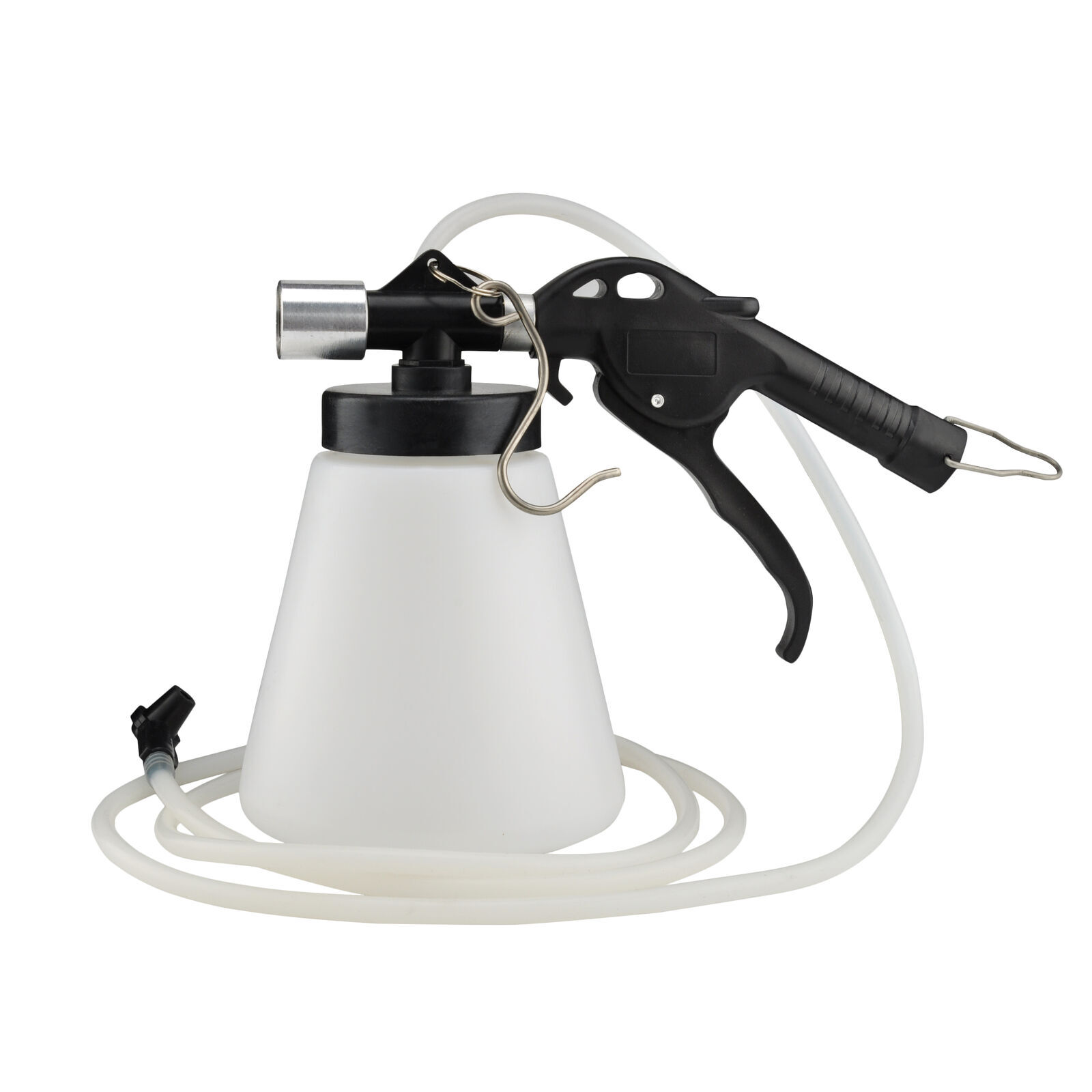 1.75L Air Pneumatic Vacuum Auto Brake & Clutch Bleeder Bleeding Fluid Change Tool Kit The pneumatic brake bleeder enables simple, one man operation using a standard workshop air supply (90 ~ 120psi). Quick clean and efficient operation without requiring specialised brake reseroir caps. Draws fluid from the brake nipple enabling brake bleeding or full replacement of fluid in the system. 100% brand new. Color: like the picture show. Package Size: about 28.3cm(L) X 12.5cm(W) X 21cm(H) Inlet air pressure: 6 -12bar(87 -174psi) Air consumption: 180ltr/min Thread connection: 1/4" BSP(female) Container capacity: 1+ 0.75litres Vacuum: 60% Manufacturer Part Number: 24440 Safety Instructions: - Keep this product in good working order and condition, take immediate action to repair damaged parts. - Use approved parts only. Unapproved parts may be dangerous and will invalidate the warranty. - Keep children and unauthorise persons away from the work area. - Keep work area clean and tidy and free from unrelated materials. - Ensure the work area has adequate lighting. - DO NOT use the kit to perform a task for which it is not designed. - DO NOT allow untrained persons to use the kit. - DO NOT use whilst under the influence of drugs, alcohol or intoxicating medication. - After use, clean equipment and store in a cool, dry, childproof area. - Dispose of waste liquids in accordance with local authority regulations. - WARNING! DO NOT pollute the environment by allowing uncontrolled distance of fluids. - Always read and comply with the warnings on the brake fluid container. - Wear eye protection and keep skin contact to a minimum. If brake fluid enters eyes rinse with plenty of water and seek medical advice. If swallowed seek medical advice immediately. - WARNING! Brake fluid is flammable - Keep away from sources of ignition, including hot surfaces e.g. exhaust manifold. - WARNING! Brake fluid will damage paintwork. Any spillage should be flushed with water immediately. Note: 1. Please check the size measurement chart carefully before making payment. 2. Please allow 0.5-1 inch difference due to manual measurement.(1 inch=2.54cm) 3. The color of the actual items may slightly different from the listing images due to different computer screen, thanks for your understanding. 4. Instruction is included. Package included: 1 L+0.75L Brake Oiler 1 X 2M Clear Tube 4 X Pcl air Line Connector
