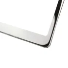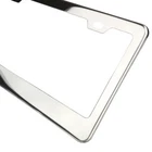 1mm thick T304 Stainless Steel License Frame come with aluminum screw cap and stainless steel screw Size:12.25 x 6.5 x 1/8 inch, inside area 11" x 4.5" Fit all USA standard license plate frame IF YOUR REGISTER STICKER IS ON THE BOTTOM OF THE FRAME THIS MAY BLOCK YOUR STICKER SO IT CAN ONLY BE USE ON THE FRONT Laser Etched Black lettering which the word it wont peel off 8k Steam hand polish surface to become mirror chrome This listing is for one license frame only if you want front and rear please purchase two We also carry different style and can customized your own word license frame please check out our ebay store or contact us for the link of the listing