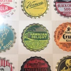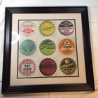 This beautiful giclee print titled "Pop Bottle Tops II" is a stunning piece of art that captures the essence of American culture. The artwork features a colorful depiction of soda bottle caps, which adds a touch of nostalgia to any room. The print is matted and framed, making it ready to display upon arrival. The piece measures 23 inches in both height and length, and is made of high-quality paper. The artwork is perfect for those who love art deco style, Americana, and pop culture. Don't miss your chance to own this unique and captivating piece of art. Nice piece with dark frame. The back has some stains and blemishes but doesn’t affect the print or frame. Please look at the pictures closely, as this is the item that you will receive.