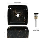 The design of this container sink has a modern and fashionable aesthetic, which will definitely complement any modern bathroom decoration. This container sink is made of high-quality glass ceramic, which is sturdy and durable, and can resist scratches, debris, and fading over time. Easy to clean: The non porous surface of this container sink makes it easy to clean and maintain, ensuring that it remains clean and stain free. This container sink is compatible with various faucet styles, allowing you to customize your bathroom design according to your taste and style. 【 Easy Installation 】 Equipped with standard sized drainage outlets, allowing the use of any standard, non overflow type drainage outlet. Please note: Faucets are not included. package include: sink + pop-up drain Warranty: Two years Product production location: China Feel free to contact me anytime if you have any questions size :15.35In*15.35in *7.87