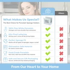 Give Your Sponges A Nicer Home With A Heartland Home Sponge CaddyWith a wider cut out, this cute sponge holder doesn’t just hold one regular sponge! It holds bigger sponges, multiple sponges, sponges and scouring pads! What a handy sponge dish holder. Good looking, too.* Vertical Dish Sponge Holder for Kitchen Sink, 3in Tall, 3.5in Wide x 2.2in Deep* 1.2in Wide Cutout at the Bottom, 1.4in at the Top* Dishwasher Safe, Modern Kitchen Decor* Thick Porcelain Sponge Sink Holder with Sharp Glazed, Kiln Fired Words That Won't Fade Off* Fully Gift Boxed Kitchen Accessories and Kitchen Counter Decor* Versatile Style for Modern or Farmhouse Kitchen NeedsOrder your porcelain sponge holder for sink from Heartland Home.Stoneware, Ceramic and Porcelain Kitchen Essentials. GIVE YOUR SPONGES A NICER HOME: Instead of a cup-shaped sponge dish, we’ve gone totally square! So you can fit more sponges, bigger sponges, or use them as a dual sponge and scouring pad sink scrubber holder! Not only that, it holds your sink stopper and lets you retrieve it easier than fishing in a cup. SIZED FOR YOUR SPONGES: This kitchen sponge holder has a generously sized cut out. It's large enough to fit your dish sponges and is also compatible as a scrub daddy holder. So measure up your sponges and scouring pads now, see how well they fit, and then add this sink holder to your kitchen sink organization. 100% DISHWASHER SAFE: Made from high-grade porcelain this sponge tray is thick, strong, and Dishwasher Safe (up to 500DegF) to easily clean up food or fingerprints and keep it glossy and looking like new! CURATE A CLEAN, COORDINATED PORCELAIN KITCHEN! Did you know Heartland Home is home to dozens of Classic Porcelain Kitchen Items? And with the same heft and beauty you’d find amongst your grandma’s carefully stored belongings. Need a sponge holder and matching napkin holder? Check out our product line! GIFT BOXED: A thick weighted kitchen sink sponge holder with sharp lettering and beautifully gift boxed. This porcelain sponge rack is an easy choice for Housewarming Gifts, Christmas Presents, Birthday Gifts, or Wedding Gifts. Give your sponge a nicer home, with a white sponge holder from Heartland Home.