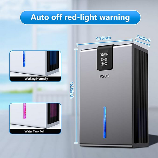 Brand PSOS Floor Area 980 Color grey Special Feature Adjustable Humidity Control Capacity 3 Centiliters Tank Volume 3 Centiliters Product Dimensions 7"D x 15"W x 9"H Recommended Uses For Product Commercial Included Components gae Material Plastic, Metal Model Name 12LE Operation Mode Sleep Air Flow Capacity 7.4 Pounds Manufacturer ewgfw The quiet dehumidifier is ideal for bedrooms, living rooms, RVs, wardrobes, closets, trailers and more Dehumidifiers for bedroom prevents leaking or overflow when water tank is full. Red indicator flashes to remind you to empty the tank of dehumidif Dehumidifier with Advanced Peltier Tech ensures whisper-quiet operation for undisturbed sleep, work, or study Lightweight and portable, this dehumidifiers for home can be positioned in various spaces Dehumidifier with reliable defrost protection, to operate flawlessly even in cold season