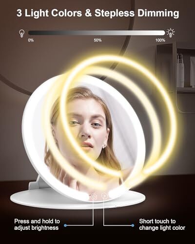 Menu 1. We require immediate payment. 2. We currently accept payment via eBay managed payments only. 3. Once payment is cleared, we will dispatch your shipment within 1-3 business days. Please refer to the "Shipping" tab for more information regarding shipping speed to your destination. Travel Makeup Mirror with Lights and Magnification 10X, Portable Make Up Compact Tabletop Mirror with Adjustable Stand, 3 Colored Lights Rechargeable Lighted LED Vanity Mirror - White Product description 【Portable Travel Vanity Mirror】Dimensions: φ7.9in. Designed to be compact and foldable, the travel mirror with light comes with a velvet storage bag for easy carrying in luggage, handbags, and backpacks. Whether you're traveling, attending gatherings, or on business trips, this unique mirror is a good choice 【180° Adjustable Smart Makeup Mirror】The desktop makeup mirror features a stand that can rotate and move 180° back and forth, allowing you to adjust to the perfect angle. Equipped with a smart sensing system, the mirror lights up when the stand is opened and automatically turns off when the mirror is closed, making it convenient and time-saving for you 【3 Light Colors and Stepless Dimming】With 58 LED lights, it features smart lighting modes and highly sensitive touch controls. Simply tap with your fingers to switch freely between soft warm light, neutral light, and white light modes. Long press for stepless dimming, allowing you to easily adjust brightness for your ideal lighting 【1X/Detachable 10X Magnetic Magnifying Mirror】The 1X magnifying mirror is perfect for overall observation, while the 10X magnifying mirror makes tasks like applying mascara or inserting contact lenses precise and easy. The detachable 10X magnetic magnifying mirror can be used separately as a portable mirror for your convenience while out and about 【1800mAh Rechargeable Battery and Wireless Use】Built-in 1800mAh lithium battery, it only takes 2-3 hours to charge for 3-12 hours of operation, eliminating the need to worry about battery replacement. Comes with a Type-C cable for convenient charging from power banks and sockets (the indicator light flashes red during charging and turns green when fully charged). This feature is perfect for travelers or those who prefer clutter-free vanity tables PLEASE MESSAGE US IF YOU HAVE ANY OTHER QUESTIONS, AND MANY THANKS FOR READING ALL OF THIS. Copyright ©#. All Rights Reserved.