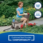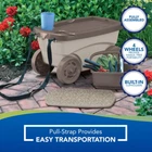 Store essential gardening supplies with an 8.5 gal. capacity Durable plastic housing with wheels offers easy mobility Includes built-in cup holders, pull strap & seating cushion Comfort and portability at its best! This durable and portable garden scooter is your solution to storage and comfort while doing your garden work. This scooter provides plenty of storage for your small gardening tools plus, it doubles as a seat. The foam cushion can even be removed and used as a kneeling pad to provide more versatility. Item measures 12.25 in. W x 22.5 in. D x 13 in. H. Get more done with less strain on your body with the Suncast® Garden Scooter. 8.5 Gal. storage capacity Portable seat constructed from plastic keeps all gardening tools and supplies in one place Foam cushion provides comfort while sitting or can be removed for use as a kneeling pad Small accessories bin included for gathering produce or organizing supplies Pull strap included for easy portability around the entire yard 2 built-in cup holders Constructed of durable, weather-resistant plastic Comes fully assembled Assembled size: 12.25 in. W x 22.5 in. D x 13 in. H