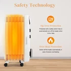 Introductions: Stay warm and cozy throughout the winter with this 1500W Oil Filled Radiator Heater. Designed for optimal comfort, this portable electric space heater is perfect for heating up bedrooms, offices, and other indoor spaces up to 200 sq.ft. With three heat settings, you can easily customize the temperature to your liking. Built with safety in mind, it features overheat and tip-over, ensuring peace of mind while you enjoy consistent warmth. Its quiet operation and portable design make it a practical and versatile addition to any home. Features: 1. Powerful and Efficient Heating: This 1500W oil-filled radiator heater quickly warms up rooms up to 200 sq.ft. The oil-filled fins efficiently retain heat to ensure consistent warmth throughout the day. With three heat settings and an adjustable thermostat, you can easily set the perfect temperature for your space. 2. Whisper-Quiet Operation: Enjoy a serene and cozy environment with this ultra-quiet heater. It operates with minimal noise, making it ideal for bedrooms and offices where silence is essential. 3. Overheat & Tip-Over: If the unit overheats or is accidentally knocked over, it will automatically shut off to prevent any potential hazards. This makes it a safe choice for households with children or pets, giving you peace of mind while staying warm. 4. Cord Storage Rack: Keep your space tidy and organized with the built-in cord storage rack. When the heater is not in use, simply wrap the power cord around the storage rack for easy, clutter-free storage. 5. Portable Design with Wheels: Effortlessly move this heater from room to room with its four 360° swivel wheels. Whether you need extra warmth in your bedroom, living room, or office, this heater's portable design makes it easy to transport and use wherever it's needed most. Specifications: 1. Voltage: 120V/60Hz 2. Rated Power: 1500W 3. Coverage Area: 15-20 sq.m / 200 sq.ft 4. Heating Element: Heating Tube 5. Timer: No 6. Heat Settings: Low - High 7. Digital Display: No 8. Base Included: Yes 9. Remote Control: No 10. Certification: FCC 11. Warranty: 1 year 12. Product Dimensions: (12.6 x 5.9 x 15) in / (32 x 15 x 38) cm 13. Weight: 7.5 lbs / 3.4 kg Package Includes: 1 x Radiator Heater 4 x Wheels 1 x User Manual