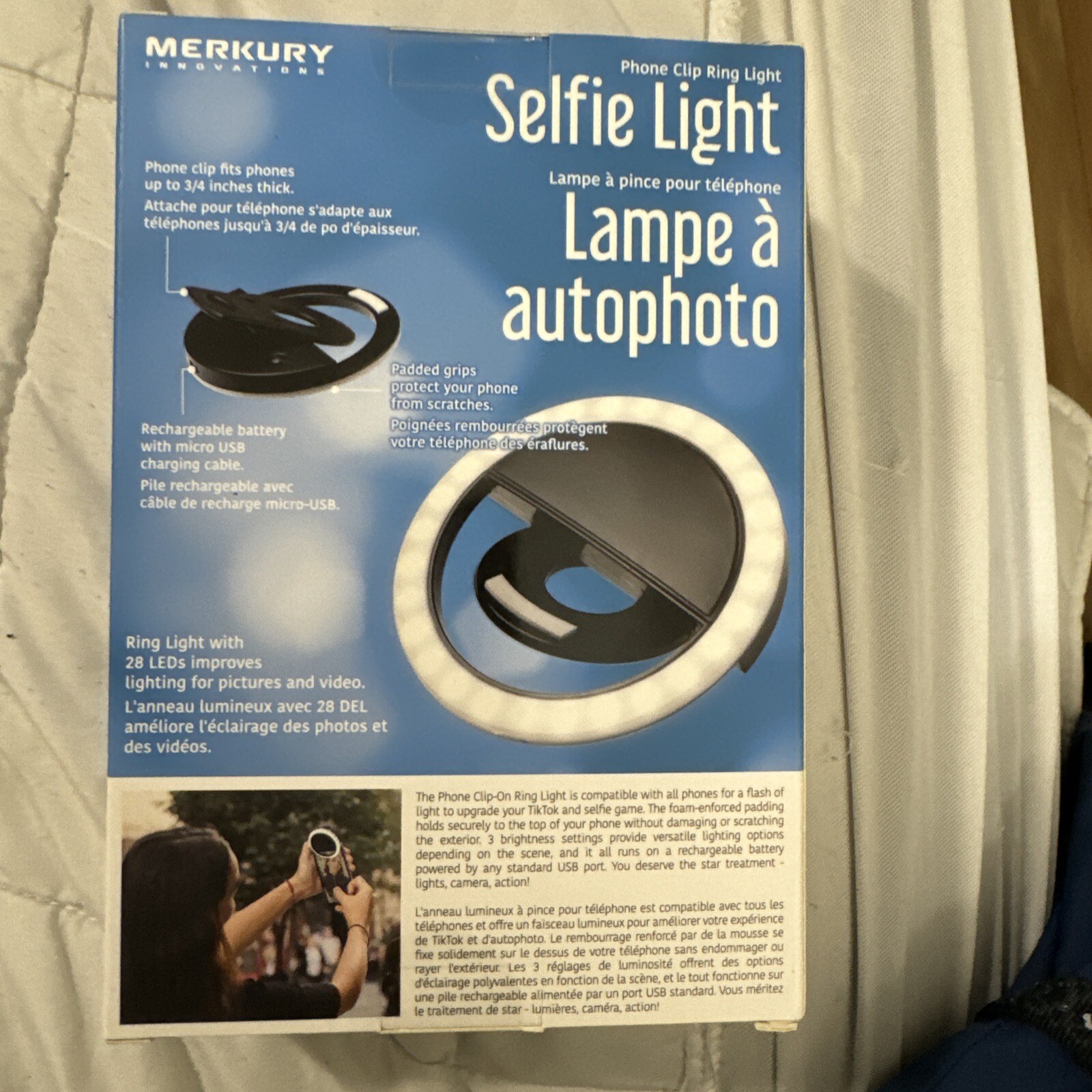 Capture flawless selfies in any lighting condition with this portable clip-on selfie ring light from Merkury Innovations. Featuring 28 LED lights, this wireless accessory is compatible with all universal smartphone models and fastens securely with a clip. The lightweight design makes it easy to carry around, ideal for taking stunning photos on the go. Enjoy the convenience of fast and free two-day shipping, along with peace of mind thanks to the 30-day money-back guarantee. The sleek white color, along with the LED feature, ensures that you'll always get the perfect lighting for your selfies. This innovative accessory is perfect for anyone looking to take their social media game to the next level.
