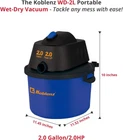 15.7" Square Iron Bonfire Pit Outdoor Camping Wood Burning Fire Pit 46.58 USD 49.55 USD Free shipping 6% off 26"Fire Pit Bowl Wood Burning Portable Outdoor Firepit Fireplace Camping Bonfire 64.57 USD 68.69 USD Free shipping 6% off 24"Round Fire Pit Grate w/10 Bars for Firepit Firewood Log Burning Rack Holder 53.57 USD 56.99 USD Free shipping 6% off 6-in-1 Hand Immersion Blender 1000W 12-Speed Handheld Blender with 600ml Beaker 50.98 USD 54.23 USD Free shipping 6% off 30" Backyards Fire Pit Poker Steel Firepit Tool with Built-in Bottle Opener NEW 49.54 USD 52.7 USD Free shipping 6% off 2-in-1 Portable Fire Pit with Pot Bracket & Carry Bag 8" Mini Tabletop Fireplace 40.6 USD 43.19 USD Free shipping 6% off Rustproof Shower Corner Caddy Organizer 4 Adjustable Shelves Tension Pole Holder 67.67 USD 71.99 USD Free shipping 6% off Tension Pole Shower Caddy 4 Basket Shelves Built-in Towel Bar Adjustable 60-97" 46.3 USD 49.26 USD Free shipping 6% off Electric Coffee Percolator 12 Cups Quick Brew Stainless Steel Easy Pour New 62.03 USD 65.99 USD Free shipping 6% off Set of 30 Clear Glass Bud Vases Thick Strong Wedding Centerpieces Decor New 48.77 USD 51.88 USD Free shipping 6% off Electric Lunch Box 80W Fast Heating Portable Food Warmer Dual Containers Travel 45.11 USD 47.99 USD Free shipping 6% off Premium Knife Sharpening Stone Set Flattening Stone Bamboo Base Nonslip Bases 49.62 USD 52.79 USD Free shipping 6% off Special Feature Portable, Lighweight, Compact, Filter Type Cloth Included Components KOBLENZ 2.0G/2.0PHP Wet-Dry Vac, 1-1/4 In x 4 Ft TWIST-N-LOCK Hose, Crevice Tool, Utility Nozzle, Filter Bag, Is Cordless? No Surface Recommendation Counter tops, carpet, upholstery, hard floors and surfacesCounter tops, carpet, upholstery, hard floors and surfaces See more Power Source Corded Electric Voltage 120 Volts Item Weight 5.7 Pounds About this item Powerful Vacuum Cleaner: Experience the exceptional power of the Koblenz WD-2L Wet Dry Vacuum Cleaner. This compact and lightweight 2.0-gallon vacuum features a wattage of 360 watts and a flexible 4-foot hose for exceptional performance.Specific uses:Spot cleaning around the home Effortless Storage: The vacuum provides designated compartments or hooks to securely store all the included accessories, such as the TWIST-N-LOCK Hose, Crevice Tool, Utility Nozzle, and Filter Bag, for convenience Cord Management: Say goodbye to tangled cords. Our car vacuum portable cleaner offers a built-in cord management system, eliminating cord clutter and making it quick and hassle-free to unwind and plug in the vacuum when you're ready to clean Versatile Wet Dry Vacuum: Designed to handle small messes in various settings, the Koblenz WD-2L Wet Dry Vacuum offers 3-in-1 capability. It effortlessly sucks up dry debris and liquid spills and can even transform into a powerful blower Compact Car Vacuum: Whether you're cleaning countertops, carpets, upholstery, hard surfaces, or car interiors, this wet dry vacuum is your reliable companion. Our vacuum cleaner's compact design ensures easy storage without taking up valuable space You may also like Portable Outdoor Propane Heater for Golf Cart with Gas Tank Stand Holder 6200BTU 62.03 USD 65.99 USD Free shipping 6% off Set of 30 Clear Glass Bud Vases Thick Strong Wedding Centerpieces Decor New 48.77 USD 51.88 USD Free shipping 6% off Angle Head F1807 PEX Pipe Crimping Tool for Copper Rings 1" Angle Single Crimper 78.92 USD 83.96 USD Free shipping 6% off Outdoor Garden Hose Storage Pot Decorative w/Drainage Hole Hose Holder Patina US 84.59 USD 89.99 USD Free shipping 6% off 208 Piece Tool Set Household Hand Tool Kit Auto Repair Tool Box for Home Repairs 67.67 USD 71.99 USD Free shipping 6% off 12PC Metric Flex-Head Ratcheting Wrench Set 8-19 mm Ratchet Combination Wrenches 42.85 USD 45.59 USD Free shipping 6% off 4 Pack Aluminum Corner Clamp for Woodworking 90 Degree Clamp Right Angle Clamp 48.49 USD 51.59 USD Free shipping 6% off Ergonomic Office Chair Video Gaming Chairs Massage PU Leather Computer Chair 54.25 USD 57.71 USD Free shipping 6% off Compact Porta Aim Gun Rest Portable Quick Height Adjustable Bench Rest Black HOT 60.34 USD 64.19 USD Free shipping 6% off US Foldable Walker with Seat Aluminum Rollator Walker 8" Big Wheels for Seniors 101.51 USD 107.99 USD Free shipping 6% off 18in Ceramic Christmas Tree Pre-lit Hand-Painted Tabletop Holiday Decor Tree US 82.64 USD 87.91 USD Free shipping 6% off Ergonomic Computer Office Chair Massage Gaming Chairs Recliner with Footrest US 88.79 USD 94.46 USD Free shipping 6% off