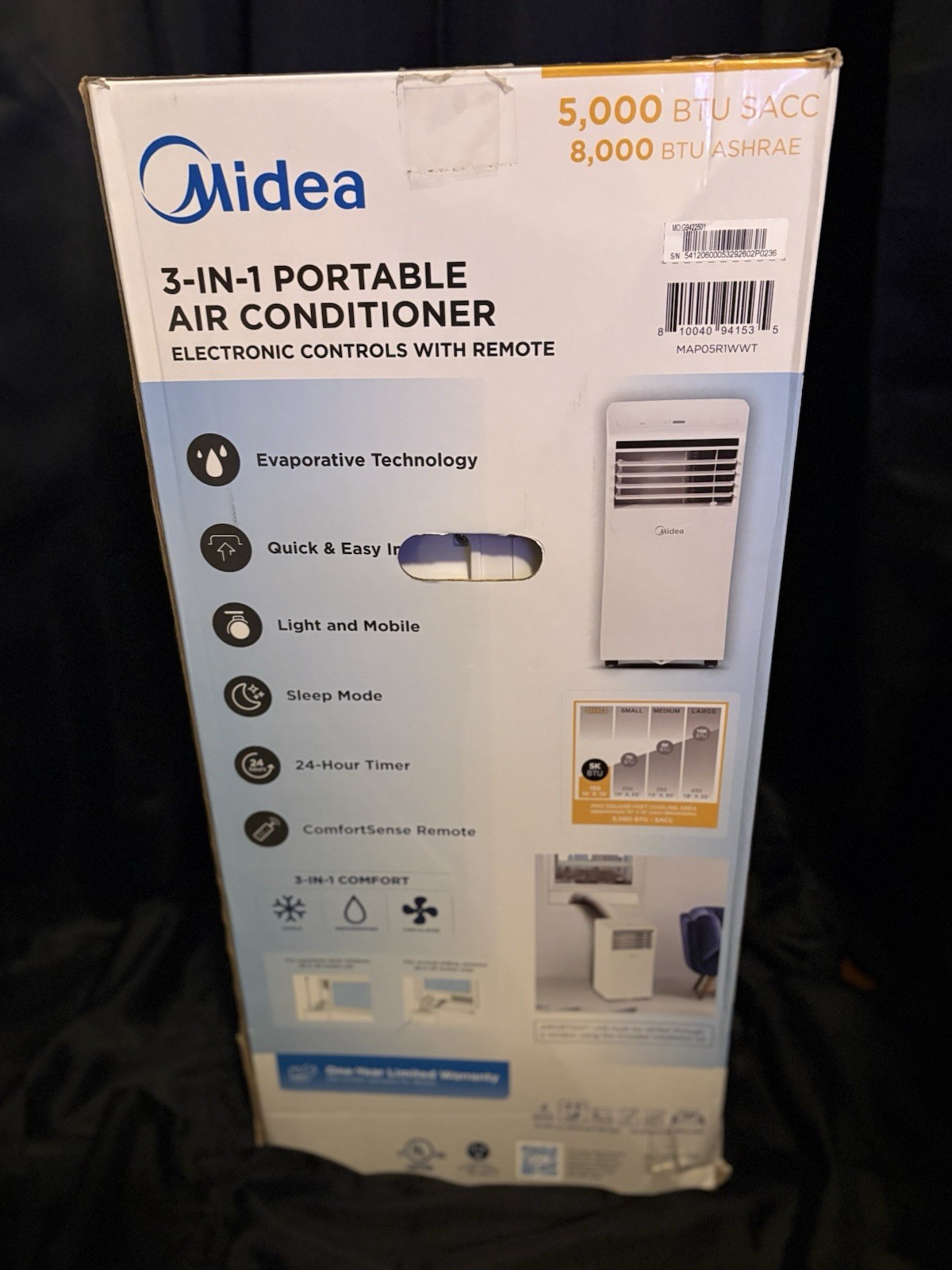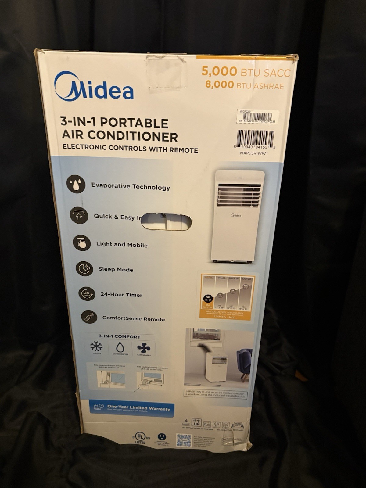 The Portable AC by Midea is a white, corded electric air conditioner that operates on three cool speeds with a direct cooling system. It features an R-32 refrigerant and a plastic material construction. The unit is designed for floor mounting and has a one-year manufacturer warranty. With a smart home compatibility with Amazon Alexa and a Wi-Fi smart home protocol, this portable air conditioner offers convenient control and energy efficiency with an EER of 3 or less. It provides a cooling system with a 1-way air direction and a remote control for easy operation.