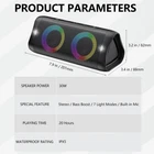 1)【30W High-Fidelity Stereo Sound】Bluetooth speaker comes with top-notch dual high-performance drivers and dual passive radiators to minimize the loss of sound quality and enhance bass. Exclusive DSP audio technology achieves clear highs, rich mids, and powerful bass. Provide an immersive stereo sound experience for all music, gaming, and movie lovers! 2)【Dynamic Light Show Sync Music Beats】speakers bluetooth wireless offer 7 light effects, you can change the rhythm mode of the lights based on the type of music you play. The strobe lights on both sides of the speaker will flash with the beat of the music, and the colorful light show creates a hot atmosphere. Let wireless speaker light up your party to make it more energetic. 3)【Small body but loud enough】The biggest drawback of portable bluetooth speaker is that they are easy to carry but the sound is not loud enough. We hope there will be incredible volume in a small body, and its sound can fill any room and garage, so we developed this loud speaker in the most popular triangular shape for more stable placement and space-saving. 4)【IPX5 Waterproof Speaker】This bluetooth outdoor speaker features a durable design and an IPX5 rating for protection against water splashes and spills. It is perfect for outdoor events such as the pool, beach, camping, biking, hiking, etc. No need to worry about the weather and the environment. 5)【Two Playback Methods】You don't have to worry about this speaker not being compatible with your existing devices. It supports Bluetooth 5.3 technology to ensure a fast and stable connection. The range is up to 100 feet without obstacles. Besides this, you can also use the 3.5 AUX input port to connect your device. Both methods can connect with your preferred device effortlessly to play music.