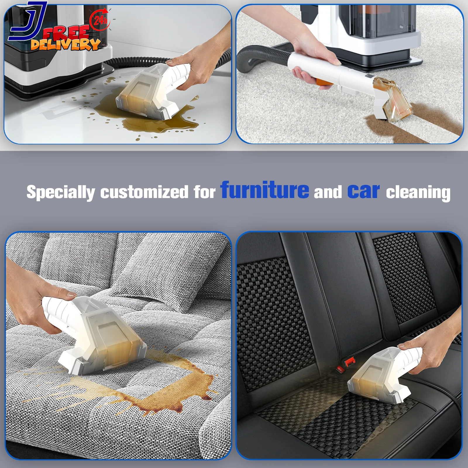 Fast Shipping On All Items 30 Days Money Guarantee Customer Support Excellent Service 100% Satisfaction Satisfaction Guaranteed Portable Carpet Cleaner Machine Upholstery Spot Vacuum Cleaner White FREE SHIPP Specification Assembled Product Weight 14.5 lb Manufacturer Part Number Portable Carpet Cleaner C4 Model Portable Carpet Cleaner C4 Color White C4 Recommended Surface Carpet, Upholstery Condition New Features Portable carpet cleaner, Carpet Cleaner Machine, vacuum cleaner, vacuum, vacuum cleaner for pets Assembled Product Dimensions (L x W x H) 14.75 x 14.50 x 10.50 Inches 10.5 inches x 14.75 inches x 14.5 inches. Weight: 14.5 lb Item Description Portable carpet cleaner machine up to 11Kpa Powerful Suction 3-in-1 clean tool and spraying crevice tool to tackle large areas and tight spaces. Powerful detergent formula to tackle pet messes. Removes set-in stains and eliminates nasty odors like pet urine. Widely used in various scenarios, especially for car seat cushions, car trunk, and indoor cleaning. Lightweight portable vacuum cleaner for car seat and pets SUPER SUCTION: The portable carpet cleaner machine features a 450W motor, providing a powerful suction of 11Kpa. This high suction power allows this cleaner to effectively and deeply handle various stains and stubborn dirt, such as dust on sofa covers. Additionally, the spot cleaner is equipped with a strong pet suction system, ensuring that carpets dry quickly after cleaning. This vacuum cleaners helps restore your carpets to their normal state swiftly, promoting a healthier and safer home environment. WIDE APPLICATION RANGE: The upholstery cleaner machine is specifically designed for fabric cleaning, making vacuum cleaner highly versatile and capable of effectively cleaning a wide range of fabric products that cannot be cleaned as a whole. Whether you need to clean sofa, mattress, car seat, or even pet-related items, this portable cleaner machine is equipped to handle them all. With two different sizes of brush heads, spot cleaner machine can adapt to different cleaning requirements and ensure a thorough cleaning of various fabric surfaces. DUAL WATER TANK SYSTEM: The vacuum cleaner machine possesses a separate 0.8L sewage tank and 1.8L clean water tank, providing convenient storage for both. This design of the cleaning machine allows for easy disassembly of the water tank, making it effortless to fill, drain, and clean. It's important to note that the water volume in the sewage tank should not exceed the MAX line to prevent any potential suction issues with the carpet cleaner. SPACE EFFICIENT: The carpet cleaner machine is designed to be lightweight, weighing only 9.3 pounds, and has a compact size of 0.076 m², which makes this cleaner machine easy to store in small spaces, such as under a sink or in a closet, without taking up too much room in your home. This compact design of portable vacuum cleaner ensures that it won't be a burden on your storage space, while still providing powerful cleaning capabilities. PORTABLE CARPET CLEANING: The upholstery cleaner machine with an ultra long hose (3.57ft) and power cord (16.4ft) and the carpet cleaner is lightweight and easy to move from one cleaning job to the next. WARRANTY: For more product details, please read the product manual carefully. we will be responsible for any product quality problems during the warranty period (3 year),please contact us. 11Kpa Strong Suction 450W Powerful Motor 3-in-1 Clean Tools Portable Carpet Cleaner Pholstery carpet Cleaner Spot Vacuum Cleaner Upholstery Cleaner Portable Vacuum Cleaner Cleaning Machine Sofa Cleaner Car Seat Cleaner 24-hour professional after-sales service. 3-year warranty. About us We offer the best prices around on high quality products. Our E-store includes media such as books, movies, music and games while offering electronics, toys, sporting apparel, clothing, tools, general home, garden items and more. Shipping We are always working hard to ensure your package arrives as soon as possible. Please understand that some factors like weather, high postal traffic, and the performance of shipping companies are outside of our control. We offer free shipping to the lower 48 states and ship within 2-3 business days of payment, usually sooner. We do not accept P.O. Boxes. Please provide a physical address. For shipping outside of the continental USA, we only use eBay's Global Shipping Program.The item is shipped to KY and then sent to the rest of the world. International customers are responsible for all duties and taxes. Continue to check out to calculate costs for shipping the item to your country. Messages regarding eBay's Global Shipping Program MUST be directed at eBay EXCLUSIVELY. Returns We offer a 30-Day Return Policy on items in which you are not completely satisfied with. You have the option of a full-refund or an exchange of the item. No returns are available on items shipped outside of the USA Satisfaction We try over very best to make sure every customer is completely satisfied. If there's a problem, message us! We're happy to help. Payment Options Shop With Confidence