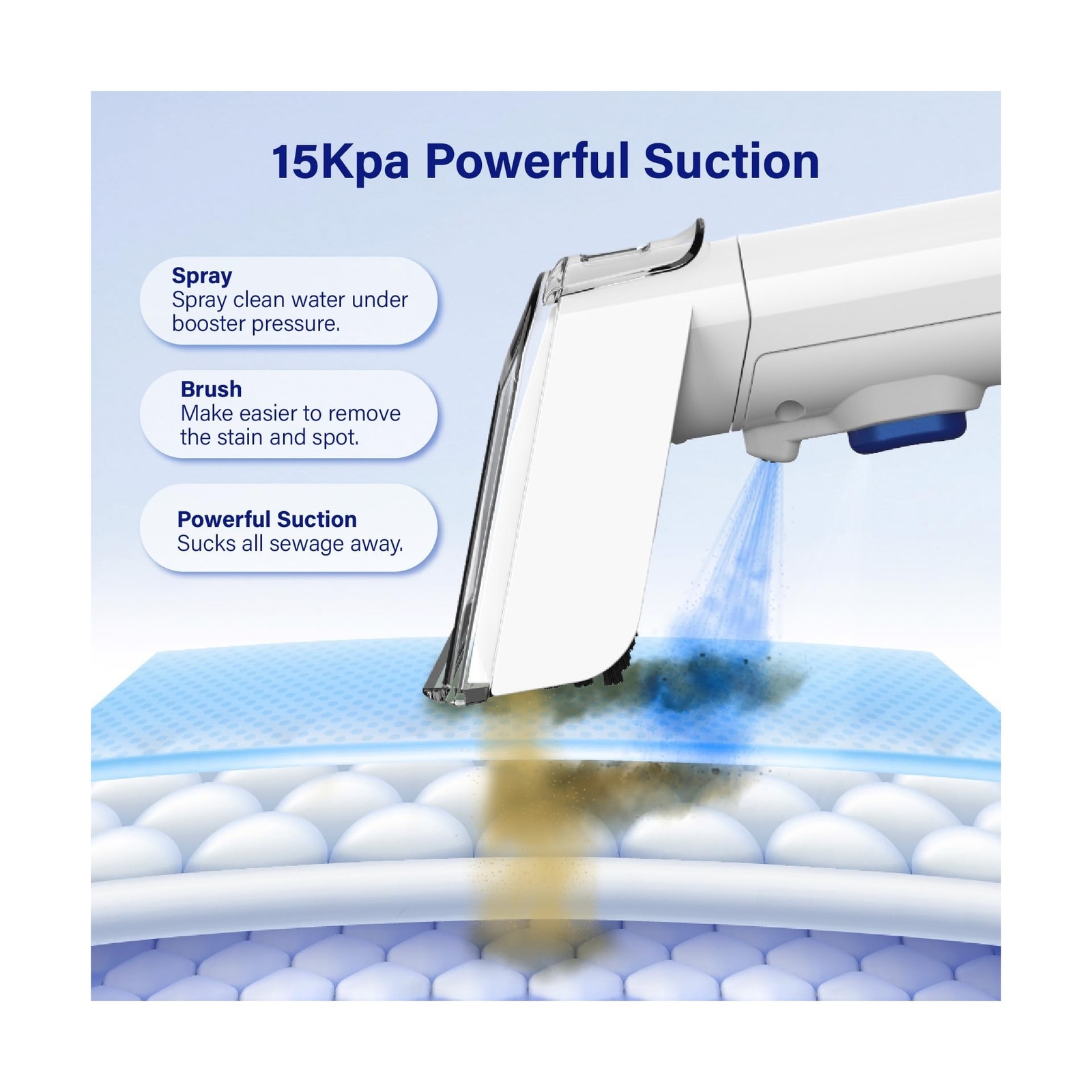 Portable Carpet Cleaner Machine, Carpet Shampooer, 15Kpa Upholstery Cleaner with 3 Tools, 54oz Large Water Tank, 16.4ft Power Cord, Spot and Stain Deep Cleaner for Rug, Couches, Car, Cyan Product Details Color: Cyan Brand: WURESE MPN: DY-508B UPC: Does not apply EAN: Does not apply Brand: WURESE Color: Cyan Model Name: DY-508B Capacity: 5E+1 ounces Package Dimensions: 16.22 x 13.82 x 7.95 inches Item Weight: 10.23 pounds Country of Origin: China Item model number: DY-508B Date First Available: October 16, 2024 Powerful Suction with 500W Motor: This carpet cleaner machine (Cyan) has a powerful suction of 15KPa and 500W super power, can be quickly cleaned, and the cleaning effect is better, and can help us solve the family cleaning problem to the greatest extent. It is recommended to wipe the fabric dry after cleaning the stains for optimal results. 3 Tools for All Your Cleaning: The carpet cleaner machine comes with 2 types of cleaning tools: Wide path tool for quickly tackling large stains. Tough stain tool for carpets, couches, upholstery, stairs, car interiors, even pet beds. The carpet cleaner machine also features a self-cleaning function that can clean the dirty water inside the pipes. (Friendly reminder: Accessories are stored inside the dirty water tank.) Dual Water Tank: Portable upholstery cleaner machine features a dual-tank system with a 54oz clean water tank and a 42oz dirty water tank, allowing you to easily detach the tanks for filling, draining, and cleaning. Tips: Do not exceed the MAX line in the dirty water tank, as it may cause the carpet cleaning machine's suction to stop. Portable and Compact: The upholstery cleaner machine comes with an ultra long hose (5.5 ft) and power cord (16.4ft), and this portable carpet cleaner is lightweight and easy to move around to clean multiple surfaces throughout your home. The brush and power cord can be stored on the machine's hook to save space. Versatile / Multipurpose: This carpet cleaning machine is recommended for use with low-foam neutral cleaning agents, (Cleaning sofa, carpet and other cleaning agent ratio 1:30; Dish soap is diluted at a ratio of 1:10 for optimal performance.) It is suitable for cleaning carpets, sofas, stairs, and other household surfaces, as well as car seats. It provides a comfortable cleaning experience and helps maintain a clean environment. Payment Back to Top We accept Paypal and All Major Credit Cards. Shipping & Handling Back to Top Item will be shipped FREE standard shipping in 1 business day after payment is received. Express Shipping services are available. Tracking number will be provided. Return Policy Back to Top Items can be returned for exchange or full refund within 30 days from the date you receive your merchandise. Please contact us before starting a return request, so we can resolve any issues and provide free returns if needed. Return shipping is the responsibility of buyer unless the return is a result of our mistake (i.e., your receive the wrong item). Contact Us Back to Top If you have any questions please contact us. We will respond within 1 business day or less.