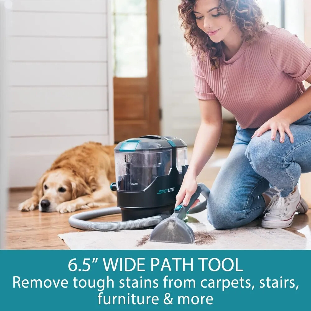 KW2001 Portable Carpet Spot Cleaner & Pet Stain Remover, 17Kpa Powerful Suction with Versatile Tools for Upholstery, Couches, Car and Auto Detailer, Color Gray Item Weight 10.2 Pounds Product Dimensions 14"D x 9"W x 16"H Style Modern About this item REMOVES TOUGH STAINS: Powerful suction lifts stains on carpets, upholstery and auto interiors.Wet Pickup : Yes, Integrated On-Board Storage : Yes LIGHTWEIGHT & PORTABLE: Weighing less than 11lbs, this spot cleaner is ready to go anywhere ACCIDENTS HAPPEN – Quickly clean messes such as mud, wine or pet accidents anywhere in your home DUAL TANKS: Effortlessly fill and empty tanks for a cleaning session plus your purchase includes a trial size of cleaning formula COMPACT DESIGN: Easily store under a sink or in a closet for convenience TACKLE ANY MESS: Includes a 3.5" tough stain tool, 6.5" wide path tool, and a trial size of cleaning formula