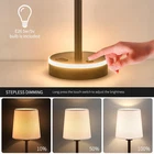 【Portable and Cordless】Experience the convenience of a portable, wireless LED lamp that eliminates cord clutter. Its compact design allows you to easily move it from living rooms to bedroom, dining rooms, or even bathrooms. Ideal for cafes, restaurants, or outdoor settings like campsites and backyards, it creates a cozy ambiance for reading or working, making it a versatile addition to any home decor or getaway! 【Built-in Rechargeable Battery】This desk lamp has a built-in 10000mAh rechargeable battery, supports 5V/2A input, The Type-C charging port ensures quick and convenient recharging. It takes 5-7 hours to fully charge. Provides over 16 hours of light at maximum brightness and over 50 hours at minimum brightness. Charging indicator shows flashing blue light when charging and constant blue light when fully charged. Making it perfect for outdoor gatherings, power outages, or creating ambiance in cord-free zones. 【3 Colors & Stepless Dimmable】Our battery powered table lamp features intuitive touch controls on the base, allowing you to effortlessly switch between color temperatures from 3000K-warm light, 4500K-warm white light, 6000K-white light. Simply long-press the touch button to adjust the light from 10% to 100% with stepless dimming. Create the perfect lighting ambiance for any occasion with ease. 【Widely used & Dedicated bulb】Rechargeable lamps cordless comes with a 5V LED bulb and USB-C cable, E26 base, 5 watt power, 350lm. Brighter than other similar. Flicker-free, eye-friendly. The small lamp provides a soft and inviting warm light, perfect for any setting.(Note: the LED will automatically dim when the battery falls below 20%) 【Design and Aesthetics】Featuring a classic vintage design, this dimmable bedside lamp has a beige linen fabric shade, black and sturdy metal base. Its aesthetic appeal complements a variety of home decor styles and enhances the overall ambiance. Standing at 15.75 inches tall, with a base diameter of 5.51 inches and a top shade diameter of 6.3 inches, it will add a touch of elegance to any tabletop arrangement.