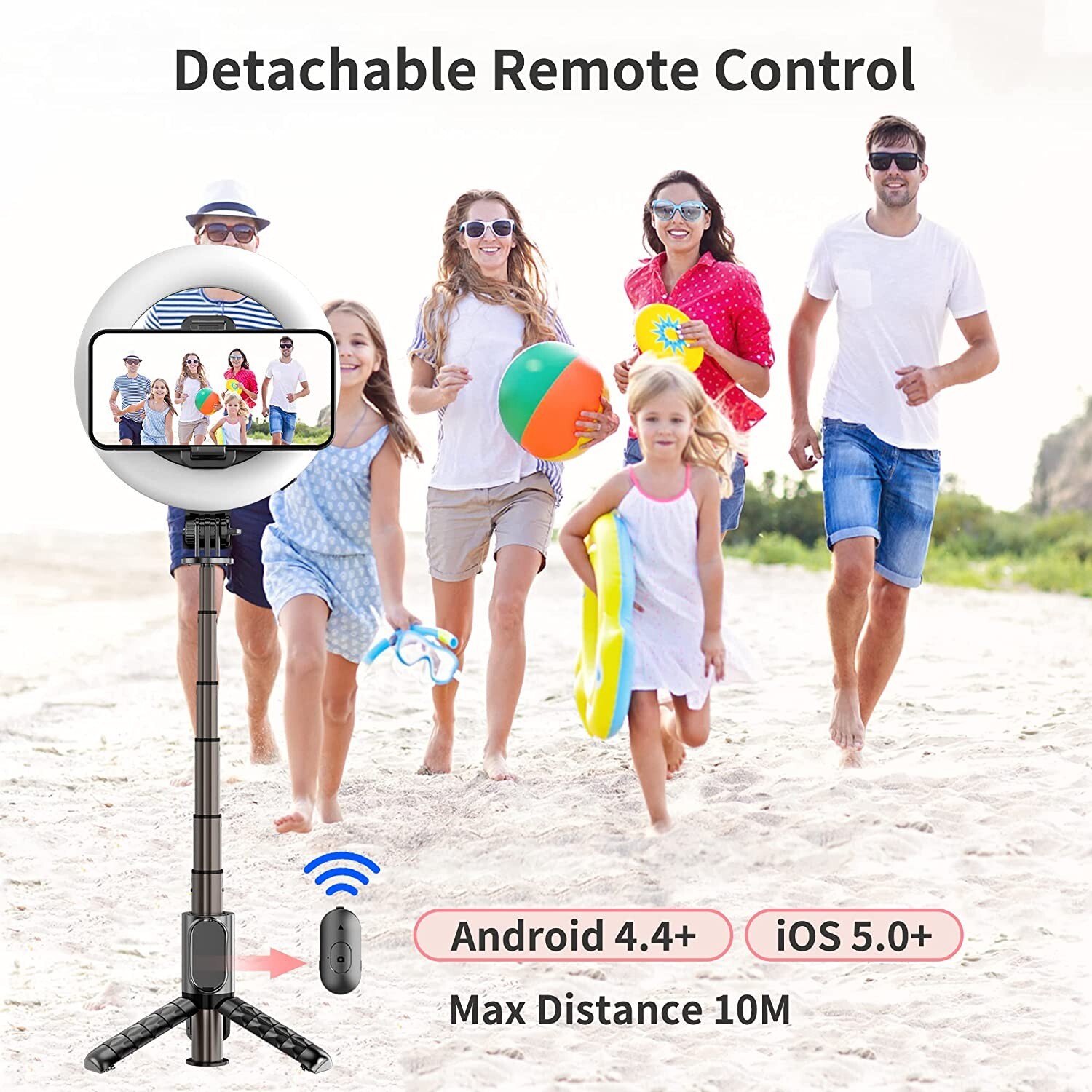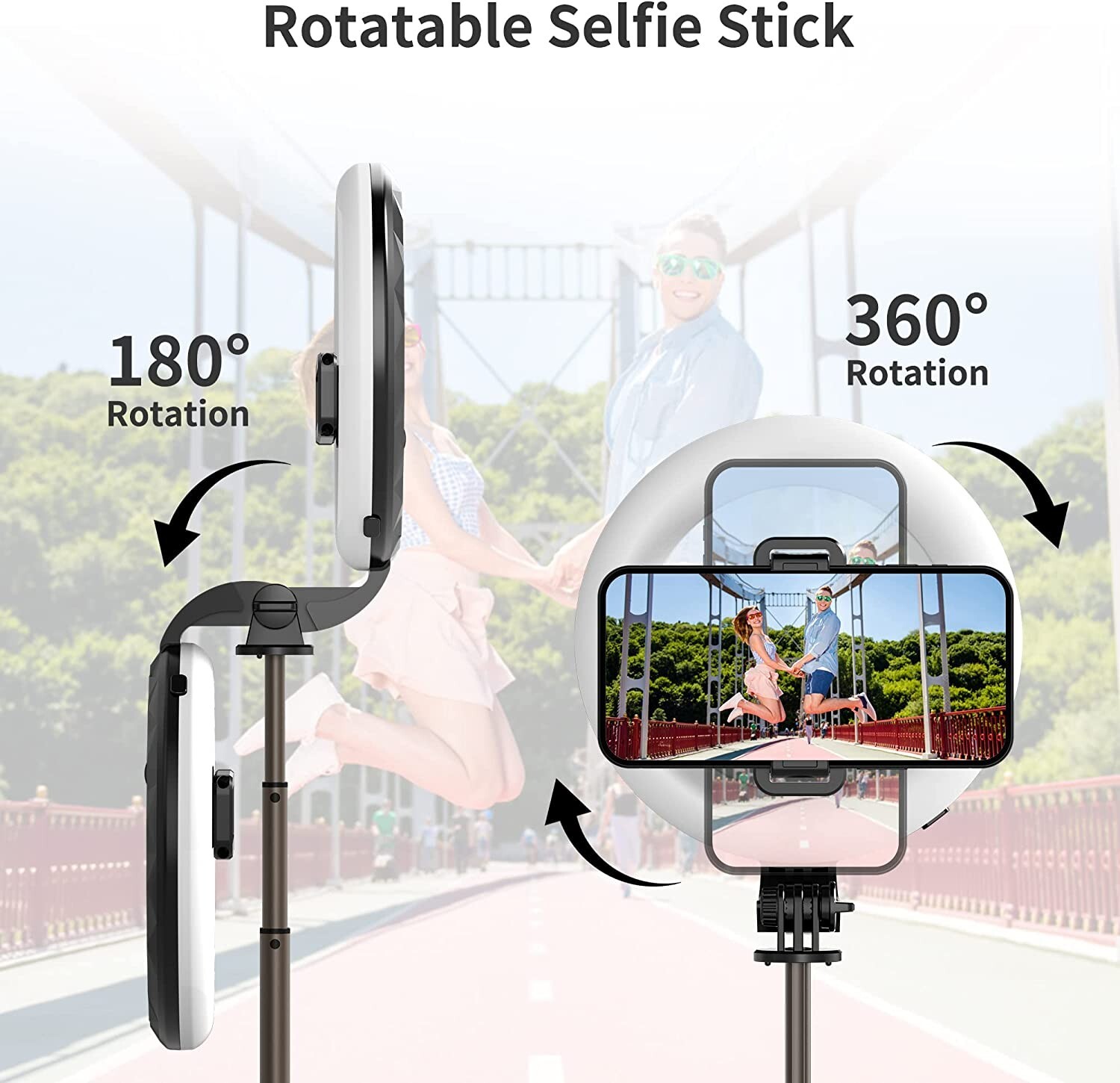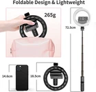 Brand SelfieShow Connectivity Technology Bluetooth Hardware Interface Bluetooth Has Self-Timer No Water Resistance Level Not Water Resistant Wireless Communication Technology Bluetooth 360° Rotation Design 225°rotation head with an adjustable knob + 360°rotatable phone holder, you could rotate the phone clip and select horizontal or vertical camera mode to get the best angle photos. Built-in Battery With built-in battery, no need to charge for use. Cold/white warm/ warm yellow color modes, and 9 brightness level. Different color will make different beauty. Removable Remote Controller Wireless remote shutter (Support 33ft remote control), it is great to take selfie and capture good moments with friends and records family daily life at suitable distance. Portable&Lightweight Compact and lightweight design with length of 6.3" , only 210g weight. This selfie ring light is portable to take everywhere, like travel, outdoor sport, parties,etc. Recording different wonderful moments for you.