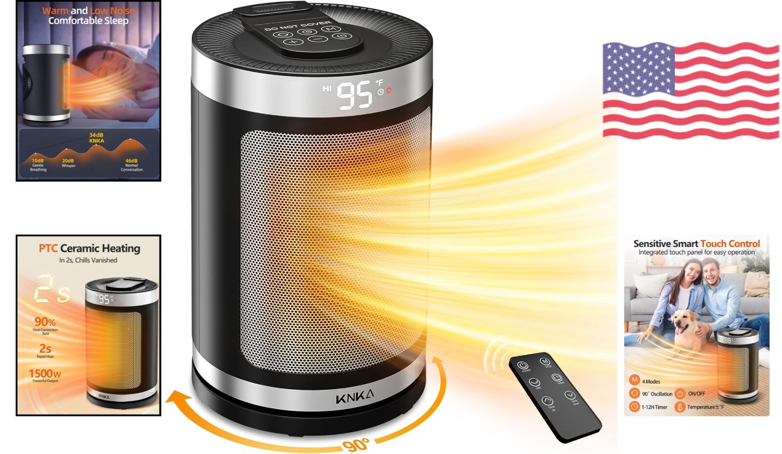 This heater is a game-changer for chilly days! It warms up my room almost instantly with its powerful PTC ceramic system, and I love the 90° oscillation for even heat distribution. The thermostat keeps things cozy without wasting energy, and the 12-hour timer is perfect for overnight use. Super efficient, quiet, and easy to move around—definitely worth it!