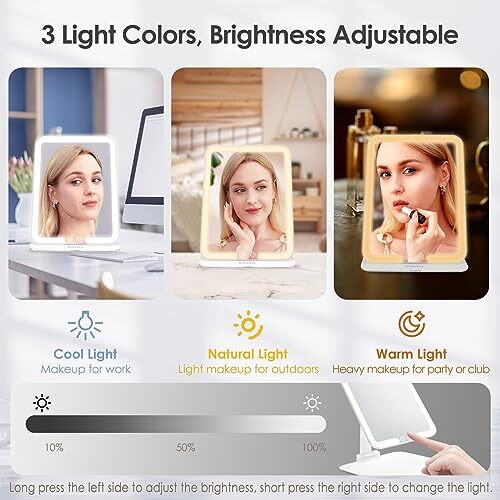 This travel makeup mirror is a game-changer! The bright LED lights with three color modes give perfect lighting anywhere, and the foldable design makes it super portable. Love that it’s rechargeable and comes with a handy storage bag—ideal for travel or home use. The adjustable stand is sturdy, and the mirror itself is crystal clear. Fast delivery and great seller—highly recommend!