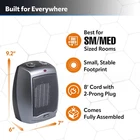 ✅【HEATS UP A ROOM FAST】Powered by an energy efficient ceramic heating element this portable space heater has 2 heat settings, High (1500W) and Low (900W), plus a Fan only option to quickly eliminate cold spots in your home, apartment, garage and basement. ✅【KEEPS YOU NICE & WARM】At 9.2 x 7 x 6 inches, this mini space heater is ideal for being on or under your desk in the home office or anywhere warmth is wanted to save on whole-house heating costs. The manual thermostat lets you control your desired personal comfort level in rooms up to 100 sq. ft. ✅【EASY TO USE】Simply take it out of the box and plug it directly into a standard 120V wall outlet. Choose from 3 settings: High/Low Heat and Fan Only. The extra-long 8-foot cord means you can now reach more places around the house. Convenient carry handle makes it easy to move from bedroom to kitchen. ✅【BUILT-IN SAFETY FEATURES】Tip-over safety switch and Automatic Overheat Protection take the worry out of using the electric heater for long periods of time. The self-contained, self-regulating ceramic heating element helps keep the exterior cool to the touch, making Lasko a safe choice for chilly days and nights. ETL listed. ✅【TRUSTED FOR GENERATIONS】Lasko is an industry leader in personal home comfort and has been making quality products for over 100 years. Lasko space heaters are backed by a 3-Year limited Manufacturer’s warranty. Why not get a second heater for your den, living room, or college dorm? Makes for a great gift too. The Lasko Ceramic Space Heater with Thermostat and Tip Switch features high and low heat settings, plus a fan-only setting so you can choose how much heat you want. The adjustable thermostat allows you to maintain your preferred temperature setting, so it's perfect for your busy home office or other living space. Compact and perfectly sized for tabletop or floor use, this heater is an ideal choice for almost any space that needs some extra warmth. This space heater was designed with safety in mind, so it features a tip-over switch, cool touch exterior, and overheat protection. The heater also includes a convenient carry handle for portability. The 8-foot cord ensures the heater can be placed right where it's needed and still be plugged directly into a wall outlet.