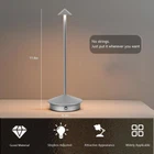 Portable LED Table Lamp with Touch Sensor, 3-Levels Brightness Metal Desk Lamp, 3 Color Touch Control Rechargeable Lamp, Night Light, Bedside Lamp,Dining Room Lamp (Silver) Product Details Finish Type: Metallic Base Material: Metal Product Dimensions: 3"D x 3"W x 8"H Lamp Type: LED Shade Color: grey Product Dimensions : 3 x 3 x 8 inches; 14.67 ounces Item model number : ASD-01 Date First Available : August 9, 2023 Manufacturer : EJFOIEJ Country of Origin : China Customer Reviews: 5.0 5.0 out of 5 stars 4 ratings Finish Type: Metallic Base Material: Metal Product Dimensions: 3"D x 3"W x 8"H Lamp Type: LED Shade Color: grey Shade Material: Metal Switch Type: Touch Style: Modern Brand: EJFOIEJ Color: Silver Special Feature: Cordless Light Source Type: LED Material: Metal Room Type: Bedroom, Living Room, Dining room, Kitchen, Children, nursery, bathroom, Home office Recommended Uses For Product: Decoration Power Source: Battery Powered Number of Light Sources: 1 Connectivity Technology: USB Included Components: Battery Mounting Type: Tabletop Wattage: 5 watts Number of Items: 1 Lighting Method: Adjustable Control Method: Touch Indoor/Outdoor Usage: Indoor Specific Uses For Product: Decoration Water Resistance Level: Water Resistant Connectivity Protocol: Usb Voltage: 5 Volts Is Cordless?: Yes Is Electric: No UPC: 755494619190 Manufacturer: EJFOIEJ Part Number: ASD001 Item Weight: 14.6 ounces Country of Origin: China Item model number: ASD-01 Finish types: Metallic Special Features: Cordless Batteries Included?: No Batteries Required?: No Date First Available: August 9, 2023 Cordless Charging Desk Lamp:This desk lamp uses a 2800 milliampere battery and wireless USB charging technology. You can enjoy its bright light anytime and anywhere without the constraints of a power outlet. After being fully charged,this rechargeable desk lamp can be used for more than 15-20 hours, which is not only practical but also energy-saving Cordless metal desk lamp: This portable table lamp is made of metal materials, light weight, high strength. The surface is subjected to precision electroplating process, resistant to scratches, and does not change color for a long time. It is suitable for dining room, bedroom, kitchen, living room and other places to add a sense of fashion to your space 3-Color Mode & Touch Control: It is especially worth mentioning that it has a three-color touch mode, after opening the bottom switch, gently touch the top of the lamp, you can switch the color and brightness. Warm white light, warm yellow light or cold white light can always meet your different needs. Whether it is reading at night, or enjoying a quiet sleep, it is your best partner 3-Levels Brightness Metal Desk Lamp:Stepless dimming from low to high, touch the switch control, touch to switch the light mode, long press to control the light brightness. Light and portable, suitable for outdoor camping, family use Small portable table lamp: strong and lightweight aluminum, simple form, elegant arrow shaped design, 360 degree lighting, smooth and slender metal arm with matte shadow, make it look stylish, minimalist, warm and unmatched power. Here, form and function become one