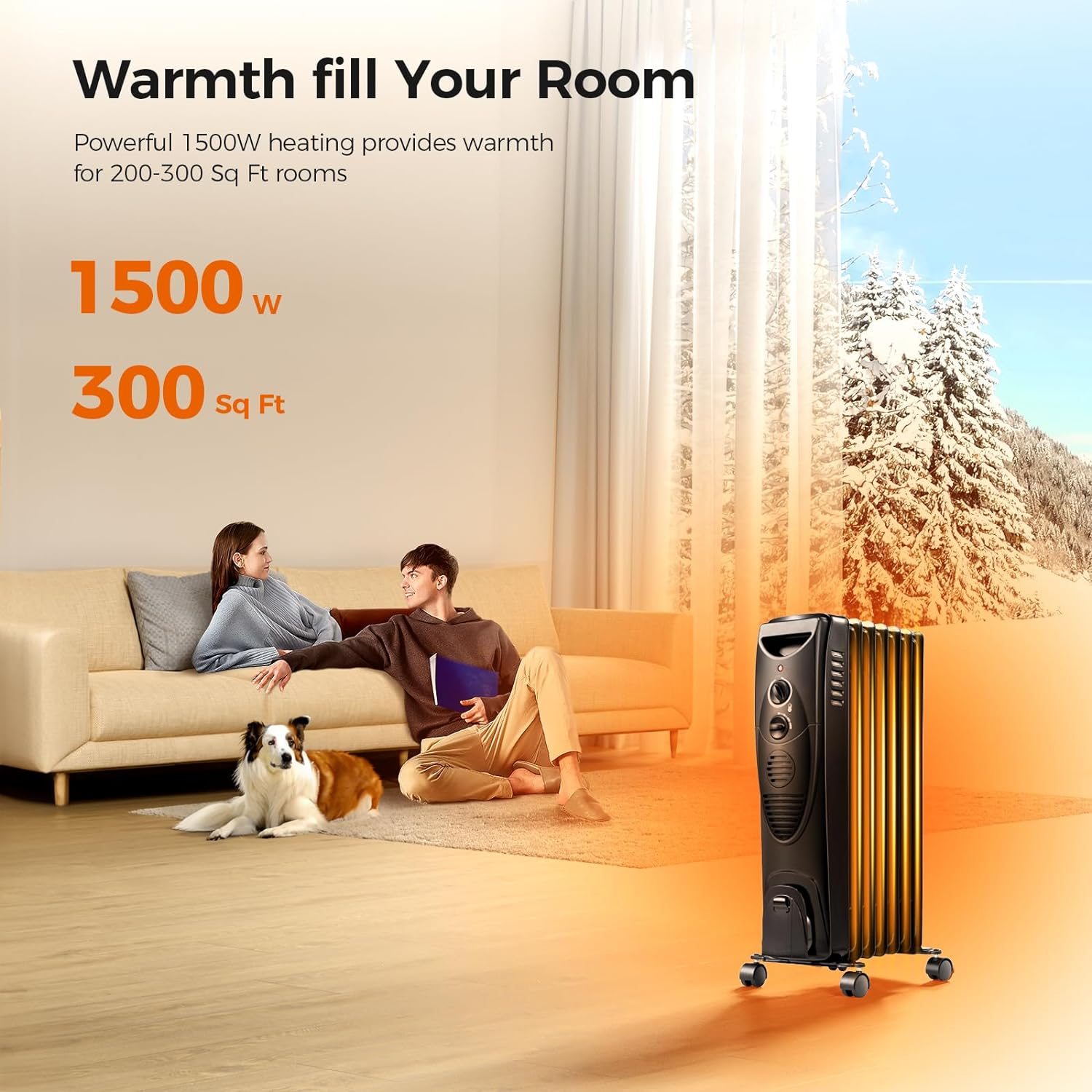 【SUITABLE FOR PERSONAL SPACE】Our Oil Filled Radiator with size of 13.78" X 9.45" x 24.61". On a cold winter's day, the family watches TV in the living room and enjoys the warmth of Kismile Oil Filled Radiator. This radiator will defend coldness and bring warmth no matter you are staying at home, working or dinning with friends. Please note that it will take about 10 minutes for the heater to heat up after the power is switched on. 【PORTABLE AND CONVENIENT HEATER】The stylish Heater can be placed anywhere in the room, And the heater comes with cord storage. No more worrying about your child or pet stepping on wires. Our heater have smooth castors for easy movement, you could use it in any room in your house. 【SMART THERMOSTAT WITH 3 MODES】Press the power switch button to either“I” (Low heating/600W) or“II”(Medium heating/900W) or both“III”(High heating/1500W).Please noted, when you plug in and press the switch button to either“I”(Low heating) or“II”(Medium heating) or “III”(High heating), the indicator will turn on immediately. 【ALWAYS KEEP YOUR SAFE】 1. Built in Automatic overheat Protection system will shut the unit off when the parts of the heater overheat. 2. TIP-OVER SWITCH will shut off when tipped forward or backward. 3. Power indicate light can let you know at a glance that it’s plugged in. 4. ETL certified. 【KEEP YOU AWAY FROM THE COLD】Simply set the heating power and temperature, start the thermostat, wait for the heater to heat up slowly, then you could start to enjoy the warmth. Our Oil Filled Space Heater can keep you warm during the cold winter months. Note: The indicator light is a power indicator that will continuously lit as long as power is plugged in. For electrical safety reasons, unplug the power when not in use. Product Description