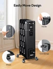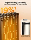 【Faster Heating with M-shaped Fins】: Our unique M-shaped heat fin design increases the radiant surface area, delivering heat in a shorter time for a faster warm-up experience. It is 19% faster compared to the traditional straight heat fins design 【Keep Your Whole Room Warm】: Powerful 1500W oil radiator with M-shaped heating fins ensures consistent warmth and effective whole-room heating 【Share Cozy Warmth up to 300 sq ft】: Enjoy non-drying warmth with your family, and say goodbye to the inconvenience of partial or single-person heating in winter 【4 Modes with ECO Mode】: Except for 3 heating modes from high to low(H3: 1500W, H2: 900W, H: 600W), the space heater is also equipped with a smart ECO mode that adjusts the operating mode according to the indoor temperature, and a built-in precise temperature sensor ensures continuous warmth in your home while saving electricity and reducing your bills 【Safety and Protection Features】: oil-filled radiator heater was constructed with flame retardant materials and ETL certified for safety. Built-in tip-over switch ensures automatic shut-off of the radiator when it accidentally tips over. Child lock mode prevents children from operating the heater. Multiple protection features enhance safety for you and your family 【User-friendly and Portable】: Both button and remote control are available. The convenient remote control allows you to set a timer or adjust the temperature just on your bed(up to 19 feet away). With a handle, universal wheels, and cord storage, it is easy to move the radiator to any desired location. Installation is quick, hassle-free, and requires no tools. If any accessories missing can ask for sending replacement parts 【Preheat Before Arriving Home】: With the 24-hour timer, you can conveniently set the heater to turn on or off according to your schedule. It also has an auto-on function while on standby(Please see Use Manual). Even after switching off, the radiator will continue to release heat