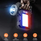 Simplified description of selling points: Efficient lighting: 200 lumens of front light XTE, 90 lumens of white light with 18 2835 lamp beads on the side lights, meeting different lighting needs. Long battery life: 5 hours of use in front light strong light mode, 7 hours in side light mode. Quick charging: Fully charged in 3 hours, supports Type-C interface charging. Multi-function mode: including front light strong light, front light weak light, side light on, red and blue flash and off functions. Portable and durable: 191g lightweight design, ABS material, waterproof in daily life, suitable for outdoor use. Specifications: Product name: K8801 solar work light-EBW2293 Lamp brand and model: Front light XTE (200 lumens) Side light 18 2835 lamp beads (white light 90 lumens) Sales power: 20W Light color: white light Color temperature: 6000K Switch position and method: Press switch Real lumen and wattage: 200LM (front light), side light 90LM Battery model and parameters: Built-in 1200 mAh 18650 battery Full set configuration: 1 work light, 1 Type-C data cable