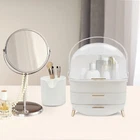 Description Portable Make Up Organiser Made of high-quality HIPS and PS materials, this high-value portable make up organiser has a large capacity and can effectively hold most of your cosmetics. It also comes with an extra brush barrel so that your makeup brushes have their place too. While the carry handle design makes it very easy to carry as well, bringing unparalleled convenience to your life!Details Hand-free Design: The flip-top lid can keep open on its own, and the hand-free design makes it easier for you to pick up cosmetics. Height-boosting Feet: It has a height-boosting design with 4 height-boosting feet to make it more stable to place