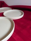 Pottery Barn Melamine Salad Plates (4) Mason Collection Set of 4 plates Stackable, outdoor friendly 7 1/8" Salad or appetizer Ivory in color Durable Melamine. Phthalate, BPA and lead free Dishwasher safe on top rack Not recommended for microwave These plates are brand new and have never been used No original box