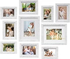 Set of 10 Different Sizes Frames: Including 8x10in(2pcs), 5x7in(4pcs), and 4x6in(4pcs) frames. Total 10 Mats: 5x7''(2pcs), 4x6''(4pcs), 3.5x5''(4pcs)mats.This means that you can use the white mat to create different looks or alter your photos, thus obtaining various decorative effects. Solid Wood and Real Glass: The picture frames set is made of solid wood and real glass to protect your photos from dust, moisture, display your photos and art work in at highest quality and definition. Wall Mounting & Tabletop Display: Each wall mount photo frame has a stand and hook at the back, making it easy for you to hang these wood frames horizontally or vertically on the wall, or stand them on the table. Come with hanging hooks and Non-trace nails are included. Protective Packing: White picture frame are wrapped very carefully to ensure safe shipping. Don't have to worry about receiving damaged products.