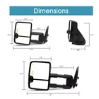 Product Description Detailed description of the product Specifications : Condition New Number Of Pieces 2 Fold Away Manual Fold Warranty 1 Year Color Black Location Passenger Right + Driver Left Side Features: Power Adjustment Mirrors Glass Heating Element to Defrost Mirrors LED Turn Signal Light (reserved,need to wire realize) Arrow Light On Glass (reserved,need to wire realize) Auxiliary Lamp (reserved,need to wire realize) Puddle Light (reserved,need to wire realize) Black Housing Manual Extendable Arms Manual Folding Arms Extend the length of the towing mirror 22" Fits: 1999 2000 2001 2002 Chevy Silverado 1500 2500 3500 2000 2001 2002 Chevy Suburban 1500 2500 2000 2001 2002 Chevy Tahoe 1999 2000 2001 2002 GMC Sierra 1500 2500 3500 2000 2001 2002 GMC Yukon 1500 2500 (excluding 2000 GMC Yukon V8 5.7L) 2000 2001 2002 GMC Yukon XL (excluding 2000 GMC Yukon V8 5.7L) Note : These mirrors will only work properly on vehicles with these exact options. If your vehicle does not have the options listed, these mirrors may not function properly. No installation guide. Professional installation is highly recommended. In the event the item should fail due to manufacturing defects during intended use, we will replace the part by free.(1 Year Warranty) The puddle lights buyer needs to do own wiring. If you encounter any problems, please contact us and we will provide you with solutions. Thank you! Payment Shipping Returns Contact Us PayPal is our preferred method of payment for all of our eBay sales. For customer service please contact us via eBay MessagesImmediate payment via PayPal is required for all Buy It Now items. If you need special arrangements, please contact us through eBay messages. Generally, all goods will be shipped within 24 hours after the payment on the working day (except for goods sent from China). If you want to cancel the order or change the address, please contact us within 6 hours after payment, otherwise we will not be responsible. It takes 3-5 working days for logistics and transportation to be delivered. If you are not satisfied with your purchase, you may return it, for a refund or replacement - subject to the following: Contact us through eBay messages or the returns link to receive a Returned Merchandise Authorization (RMA) number to ensure proper handling of the return and/or replacement. In order to be eligible for a full refund, less shipping expenses, your returned merchandise must be in its original new condition, as shipped, with all packaging, manuals, and paperwork intact and unaltered. Items which have been opened are returnable, however they will carry a restocking fee. If that product is returned for a refund, the shipping expenses incurred, will be deducted from the refund. If an item is refused, the carrier bills us for shipping both ways, and these expenses incurred on your behalf need to be deducted from your refund If you have a question about a part you should contact us before buying.And If you have any questions after purchase, please contact us and we will provide a satisfactory solution. Payment PayPal is our preferred method of payment for all of our eBay sales. For customer service please contact us via eBay MessagesImmediate payment via PayPal is required for all Buy It Now items. If you need special arrangements, please contact us through eBay messages. Shipping Generally, all goods will be shipped within 24 hours after the payment on the working day (except for goods sent from China). If you want to cancel the order or change the address, please contact us within 6 hours after payment, otherwise we will not be responsible. It takes 3-5 working days for logistics and transportation to be delivered. Returns If you are not satisfied with your purchase, you may return it, for a refund or replacement - subject to the following: Contact us through eBay messages or the returns link to receive a Returned Merchandise Authorization (RMA) number to ensure proper handling of the return and/or replacement. In order to be eligible for a full refund, less shipping expenses, your returned merchandise must be in its original new condition, as shipped, with all packaging, manuals, and paperwork intact and unaltered. Items which have been opened are returnable, however they will carry a restocking fee. If that product is returned for a refund, the shipping expenses incurred, will be deducted from the refund. If an item is refused, the carrier bills us for shipping both ways, and these expenses incurred on your behalf need to be deducted from your refund Contact Us If you have a question about a part you should contact us before buying.And If you have any questions after purchase, please contact us and we will provide a satisfactory solution. Related Products Pair Tow Mirrors Power Heated Turn Signal For 2015-2018 Chevrolet Silverado 2500 Tow Mirrors Power Arrow Signal Fits 2007-2013 GMC Yukon XL 2500 Left+Right Side Towing Mirrors Manual Fold For 2009-2012 Chevy Silverado 2500 3500 LH+RH Black Pair Tow Mirrors Power Heated Fits 99-02 Chevy Silverado GMC Sierra 1500 Black Pair Tow Mirrors Power Heated LED Signal Fits 2004-2006 Chevy Tahoe Suburban Heated √ √ NO √ √ Power √ √ NO √ √ Turn Signal Light √ √ NO √ √ temperature sensor NO NO NO NO NO Puddle Light √ √ NO √ √ Arrow Signal Light √ √ NO √ √ housing color Black Black Black Black Black folding Manual Manual Manual Manual Manual fit for 14-18 Chevy Silverado 1500 15-18 Chevy Silverado 2500 3500 14-18 GMC Sierra 1500 15-18 GMC Sierra 2500 3500 07-13 Chevy Avalanche 07-14 Chevy Silverado / GMC Sierra 07-14 Chevy Suburban 07-14 Chevy Tahoe / GMC Yukon 07-13 Chevy Avalanche 07-14 Chevy Silverado / GMC Sierra 07-14 Chevy Suburban 07-14 Chevy Tahoe / GMC Yukon 99-02 Chevy Silverado/GMC Sierra 00-02 Chevy Suburban/GMC Yukon XL 00-02 Chevy Tahoe 02 Chevy Avalanche 03-06 Chevy Silverado/ GMC Sierra 07 Chevy Silverado/ GMC Sierra Classic 03-06 Chevy Avalanche/ Suburban/ Tahoe 03-06 G