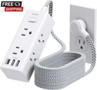 Fast Shipping On All Items 30 Days Money Guarantee Customer Support Excellent Service 100% Satisfaction Satisfaction Guaranteed Power Strip Surge Protector - 6 Widely Outlets with 3 USB Ports (1 USB C), 3-Side Outlet Extender Strip, 5 Ft Extension Cord Flat Plug, Wall Mount Small Power Strip for Travel Home Office College Dorm Specification Item model number OB6W3C Style 0.67“ Flat Plug Color Grey Product Dimensions 5 x 1.9 x 0.04 inches Country of Origin China Item Weight 11.8 ounces Total Power Outlets 9 Voltage 125 Volts Special Feature USB C Slot, On And Off Switch, Surge Protection, Mountable, Usb Slot Size 5FT 1.9 inches x 5.0 inches x 0.04 inches. Weight: 11.8 oz Item Description 【9-IN-1 Desktop Power Strip with USB C Fast Charge】— With 6 AC outlets, 2 USB ports and 1 USB C power strip, power up 9 devices simultaneously. USB C charging port features 3A Max, USB A charging port features 2.4A Max, With smart charging technology, it can auto-detect your connected devices and can reach faster-charging efficiency, which would charge your devices WITHOUT a variety of converters. 【3 Side Space Saving Design & Widely Space Outlets】— 3-side design and each AC outlets with 1.6 inches space in between, larger than standard 1.5-inch socket, fit big adapters without blocking each other. The compact size (5.0*1.9*1.8 IN) takes up less space on your desk or luggege, essential for the travel, home, office, and college dorm. 【Wall Mountable Extension Cord with Flat Plug】— The low-profile flat plug fits easily in tight spaces; and the right angle flat plug design prevents bottom plug blocking; the 5ft upgraded power cord is very thick and has better current carrying capacity (13A); the two mounting holes on back allows this power strip to be securely installed in various applications. 【Overload Surge Protection 】 — Features 900 Joules surge protector outlets. Lighted on/off switch with integrated circuit breaker for overload protection of all outlets, It will automatically cut power to protect connected devices when voltage surge is overwhelming. (The "Surge Protected” indicator light on to show your devices are protected). 【Multi Safety Protection】— This travel power strip certified by ROHs, FC, ETL, protected against over-voltage, over-current, over-charge, short-circuiting, over-heating. Fire-resistance PC shell with flame retardant at 1382℉ makes it more durable and longer lifetime. Product Description 9-IN-1 USB C Power Strip for Home, Office, Travel - 6 AC outlets and 3 USB charging ports ( 1 USB C ) provide power and charging for up to 9 devices from a single wall charging unit. - 3 Side Compact Design , take less space and charging more devices without blocking. - 5 Ft heavy duty extension cord with low-profile flat plug, great for stashing under or behind furniture. - 2 keyholes on the back, easily mount this flat extension cord onto the wall. Why choose us? In order to build a brand that is worthy of everyone's trust, make it famous for its excellent products. We carefully investigate the needs of consumers and strive to make our product better match customers' needs. We collect many customer needs and user feedbacks to improve our multiple outlet plug extender.You can find many user-friendly designs on our products. Wall Mountable Power Strip 6 Outlets Power Strip with 3 USB Charging Ports This power strip can support 9 devices simultaneously. 3 side space-saving design and compact size, ideal for small and tight place, great for home, office and travel use. It also with 2 holes on back, easy to mount it everywhere. Most devices and home appliances can be connected. Compatible with 100~240V worldwide voltage, meaning you could use it while traveling overseas together with a travel plug. However, it's NOT a voltage converter and your device needs to support 100-240V as well. 3 Side Space-saving & 1.6 Inch Widely AC Outlets 6 AC Outlet + 2 USB-A + 1 USB-C Ports 5 Ft Braided Upgrated Power Cord Multi Safety Certificate & 900J Surge Protection 45° Right Angle Low Profile Flat Plug Specification Power Rating 125V 60HZ 15A Maximum Power 1875W MAX Surge Protector Rating 900 Joules Length of Cable 5 Ft/1.5m USB C OUTPUT 5V/3A MAX USB A OUTPUT 5V/2.4A MAX USB OUTPUT 5V/3.1A TOTAL Safety Protection ETL List, FCC, RoHs 3 Side Non-blocking Design The unique 3 sided space saving design and 6 widely spaced ac outlets are separated enough to fit big plugs without blocking each other, easily plug in your PC, TV, more. USB-C High Speed Charging USB Total Output 3.1A, Built-in SMART IC with Super change technology intelligently detects your device to deliver its fastest possible charge speed up to 2.4A. USB-C port can up to 5V/3A. The USB-A charging is NOT Fast Charge QC 3.0, It can meet most USB devices charging needs. Overload Protection Features 900-Joule surge protection, overload protection, and much more to keep you and your devices safe. Multiple safety protection can prevent your electric devices from over-current/over-charge/short circuit/over-heated. Fireproof Material Fire-resistance PC shell with flame retardance at 1382℉ makes it more durable and longer lifetime. Attach Anywhere Designed with a right angled slimmer flat plug than other power strips, perfect for hard-to-reach outlets tucked away behind your bed or sofa. Upgraded Braided Extension Cord 15A heavy duty cord 5 ft to provide up to 1875W, compatible with higher power of most devices. The braided design makes it tangle-free and more flexible, elegant, durable and hard-wearing. About us We offer the best prices around on high quality products. Our E-store includes media such as books, movies, music and games while offering electronics, toys, sporting apparel, clothing, tools, general home, garden items and more. Shipping We are always working hard to ensure your package arrives as soon as possible. Please understand that some factors like weather, high postal traffic, and the performance of shipp