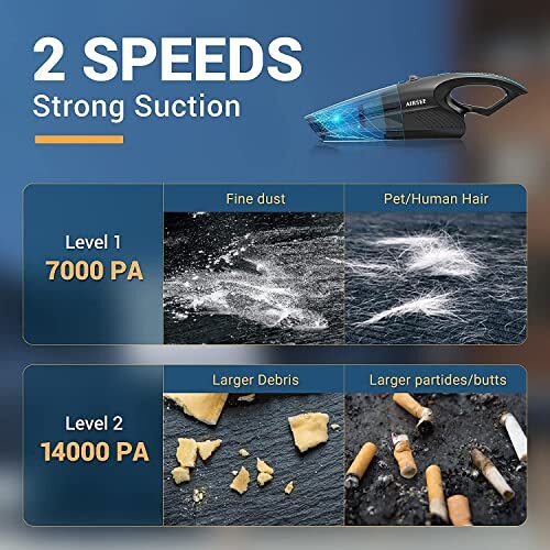 Return Policy Fast Delivery Trusted seller Handheld Vacuum Cordless, 14 KPA Powerful Car Vacuum 2-Speed Strong Suction Hand Vacuum with a Special Suction Port for Vacuum Storage Bags Mini Vacuum Cleaner for Home and Car Cleaning Product Description 【14000PA Strong Suction】 cordless vacuum cleaner designed with a ultra-high power motor with suction up to 14Kpa. 2 modes provides standard suction (7Kpa, 25 mins) / stronger suction (14Kpa, 13 mins), to meet your various demands. The hand held vacuuming cordless can quickly remove daily hair, cigarette ash, cat litter, paper debris, drive-thru crumbs, liquids, soil stones,etc. 【Multi-Functional Accessories】With 3 different attachments, one car vacuum cleaners cordless can meet all your satisfactions. The brush tool is for carpet, lampshade, keyboard and air vent. The crevice nozzle tool is for narrow gaps and corners. The soft long tube is for hard-to-reach areas unseen motes which hidden deeply in sofas and mattresses. This small vacuum cleaner has a special suction port suitable for vacuum storage bags. 【Cordless Handheld Vacuum】Cord-free! Hassle-free! The portable car vacuum is lightweight and compact to help free your movement to everyw easily without bulky and tangled cords for cleaning your stairs, window ledges, kitchen, lampshades, car or hard-to-reach corners. 【LED Light Design】This cordless vacuum handheld features a bright LED Light which is helpful for the dark & corner cleaning. This hand held vacuum comes with two replaceable washable & durable HEPA filters. And the translucent dust bowl is easy to see dirt and empty. 【Faster Charge & Large Dust Cup】 hand vacuum cordless rechargeable with USB C cable & AC adapter adopted 2000mAh Lithium-ion battery. The mini vacuum can be fully charged with 100v-220v power supply in just 3-4 hrs. And hand vacuum cordless goes with a large-capacity dust collection cup to meet the needs of deep cleaning dirty from your home and car.(Tips: Please fully charge the device before the first use.) Shipping Returns Payment Shipping Shipping is FREE to all addresses other than APO/PO boxes in the lower 48 states. All our stock ships from US-based warehouses. Shipped via USPS or UPS (depending on location and package weight) Unless stated otherwise, all orders will ship within 24-72 hours of your payment being processed. Check our feedback to see the great reviews of FAST shipping we offer. Returns Seller does not accept returns Payment We currently accept payment via eBay managed payments only. Once payment is cleared, we will dispatch your shipment within 1-3 business days. Please refer to the "Shipping" tab for more information regarding shipping speed to your destination.