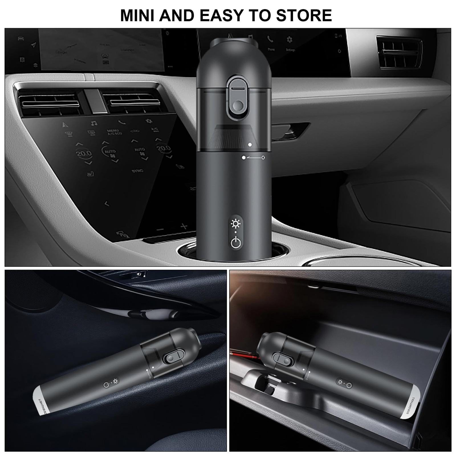 [15000PA Powerful Vacuum Cordless] This car vacuums with best suction cordless features an 120W upgraded powerful motor with much less noise lower than 70dB, speed up to 90,000RPM. Two suction modes can be switched freely: 15kPa/10kPa, this handheld vacuum cordless allows you to clean pet hair, crumbs, dust, and sand hidden in car seat or sofa. [Long-lasting Battery Life & Type C Charging] This mini vacuum cleaner cordless adopts 8000 mAh battery, can be fully charged in 3.5 hours, which can provide up to 35 minutes of continuous use on a single charge, which is enough to clean the corner of home, car, kitchen or office. [6-in-1 Design Portable Vacuum Cordless] Combines the car vacuum cleaner, inflator, led flashlight and SOS emergency light in one design. This versatile vacuum handheld is a must-have for keeping your vehicle clean and fresh at all times, ideal for car detailing, home cleaning and outdoor use. [Multi-Purpose Accessories] This cordless vacuum cleaner for car comes with a variety of nozzles, extension hoses easily to clean hard-to-reach narrow gaps and corner. The 2-in-1 brush nozzle is suitable for cleaning car air outlets, stubborn dust on foot pads. Equipped with 4 universal nozzles, it is suitable for inflating balloons, swimming rings, and so on. [Lightweight and Portable] Say goodbye to tangled cords and limited reach with this hand vacuum cordless rechargeable. Its lightweight construction allows effortless maneuverability around the house and car, making cleaning a breeze. Reusable HEPA filter is washable and air-dried. Efficient cleaning leads to an elegant life.