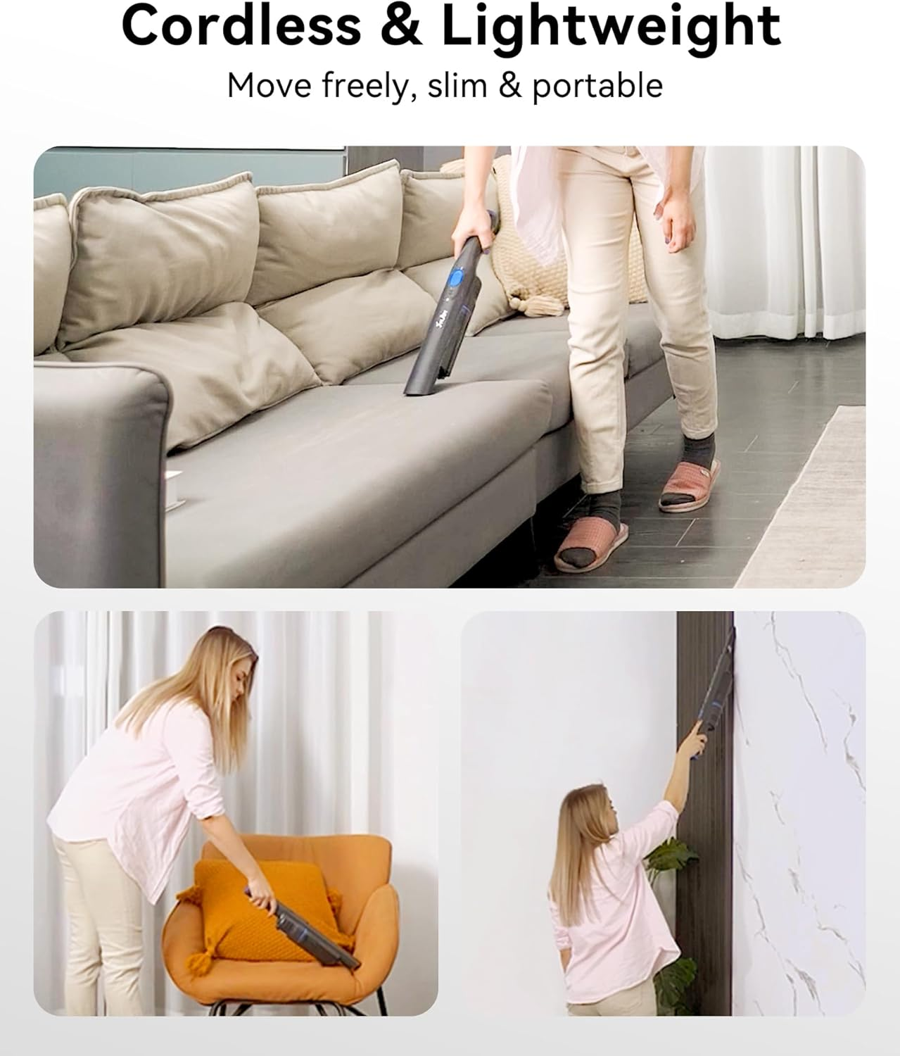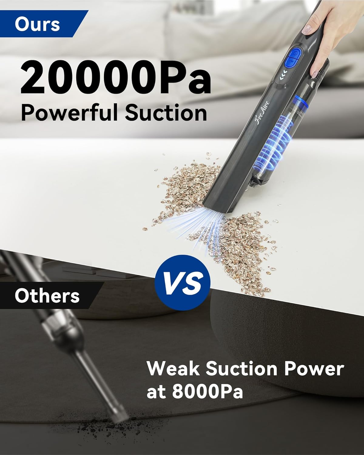 Absolutely love this handheld vacuum! The suction power is impressive—quickly picks up dirt and crumbs on both max and standard modes. Super lightweight and cordless, making it perfect for cars, sofas, and tight spaces. The battery lasts long enough for thorough cleaning, and the fast charging dock is a huge plus. Super convenient and efficient—highly recommend it!
