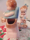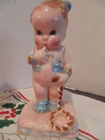 This vintage ceramic baby planter and little cowgirl baby figurine features a charming baby design, perfect for a nursery or collection. Planter measures almost 7" inches in height, while cowgirl measures approx 6" it is a medium-sized planter with a glazed finish. The items are made of high-quality ceramic material The planter is perfect for displaying small flowers or plants and will add a touch of whimsy to any room. Their 1950s style and baby theme make it a unique and delightful addition to any collection. Unmarked but probably made in Japan and cute as can be.