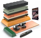 Premium Knife Sharpening Stone Set – 400/1000 and 3000/8000-Grit Professional, Safe Knife Sharpener Set – Whetstone Set Includes Flattening Stone, Bamboo Base, and 2 Nonslip Rubber Bases